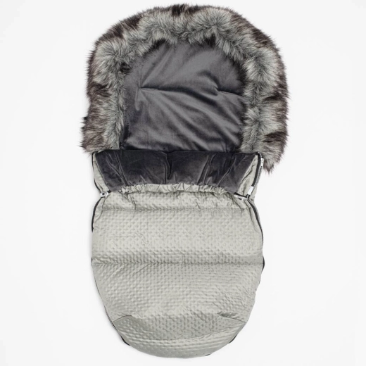 Zahvaljujući bočnim patentnim zatvaračima duž cijele duljine vreću lako otvarate i dobivate praktičnu podlogu za kolica. Krzno na kapuljači je odvojivo pomoću drukera za jednostavno održavanje i varijabilnu uporabu. Univerzalni razmak predšivenih otvora za petotočkaste pojaseve osigurava kompatibilnost s većinom kolica i autosjedalica.