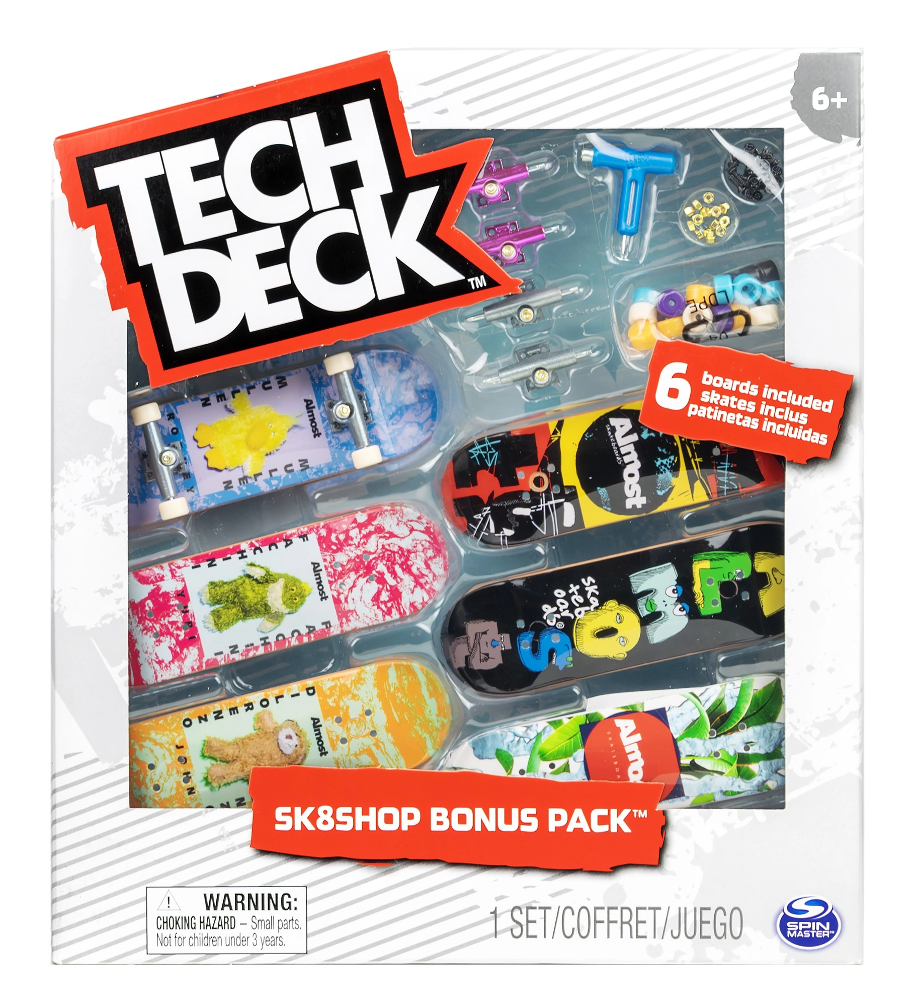 Otkrijte svijet fingerboardinga s paketom Tech Deck Bonus Pack – kompletno pakiranje za sastavljanje vlastitih mini skateboardova. Uključen je 1 gotov fingerboard i još 5 dasaka s gripom, tako da možete odmah početi trenirati trikove i poboljšavati koordinacijske vještine. Sjajan izbor za fanove brendova kao što je ALMOST i idealno za djecu od 6 godina.