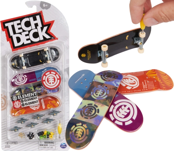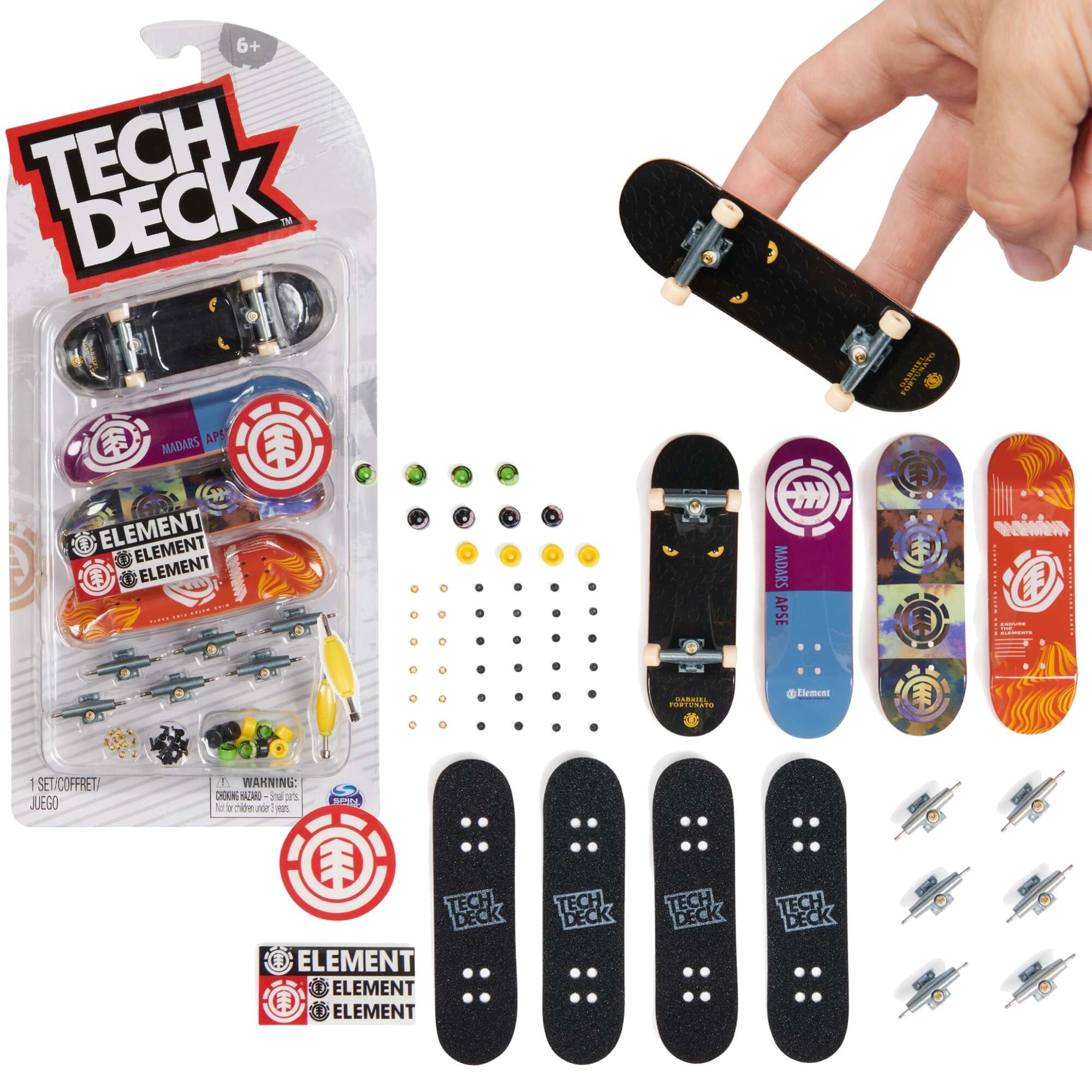 Sastavite svoj fingerboard točno po vlastitom ukusu. Ovaj 4‑pack ELEMENT Tech Deck uključuje kompletan fingerboard spreman za vožnju i još tri daske s dijelovima za zamjenu, kako biste mogli dotjerati izgled i vozne karakteristike. Zahvaljujući autentičnom obliku dasaka i kvalitetnim komponentama lako ćete savladati ollie, kickflip i druge popularne finger trikove.