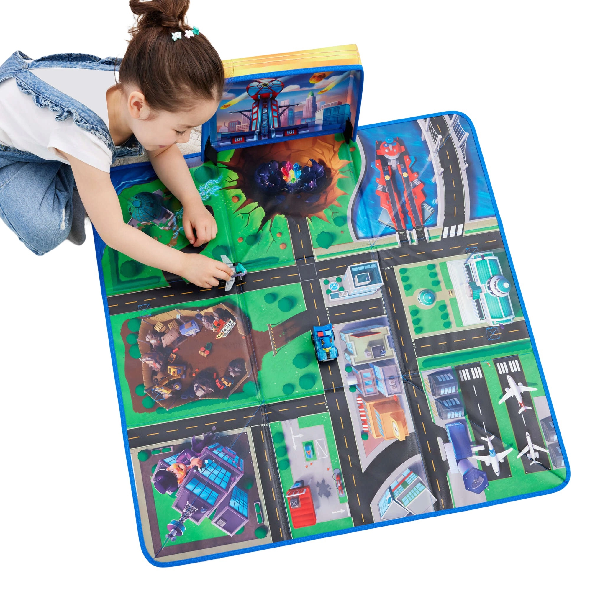 Ova sklopiva podloga inspirirana filmom PAW Patrol: The Mighty Movie donosi u dječju sobu cijeli Grad pustolovina – ulice, raskrižja, most i zračnu luku. Površina je mekana, šarena i poziva na maštovitu igru s vozilima i figuricama omiljenih junaka.