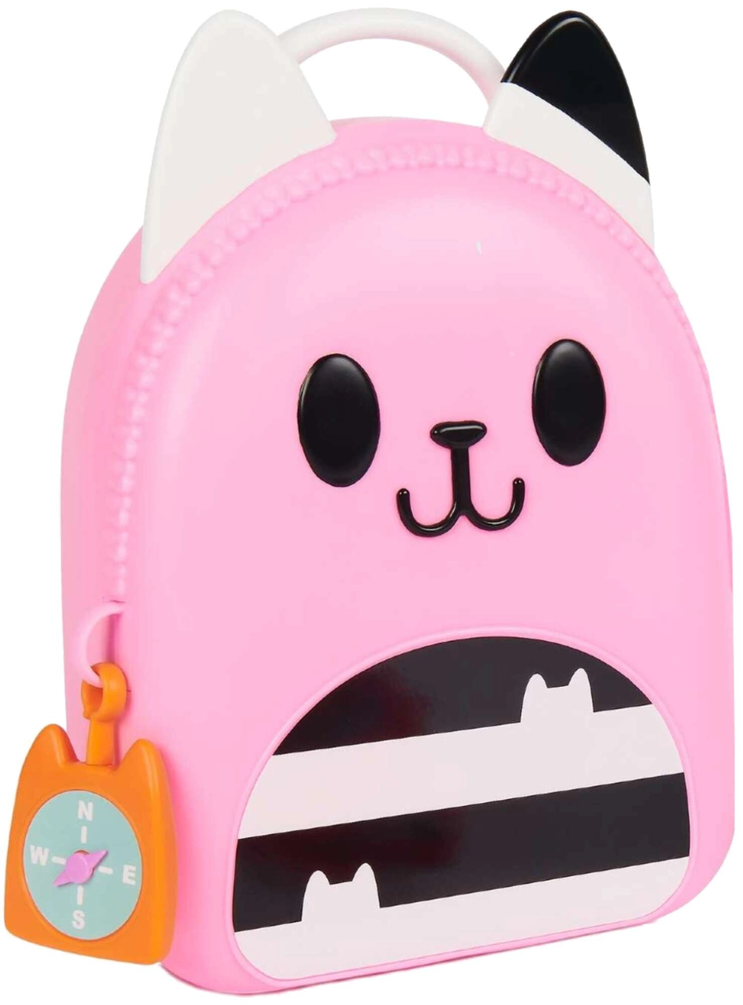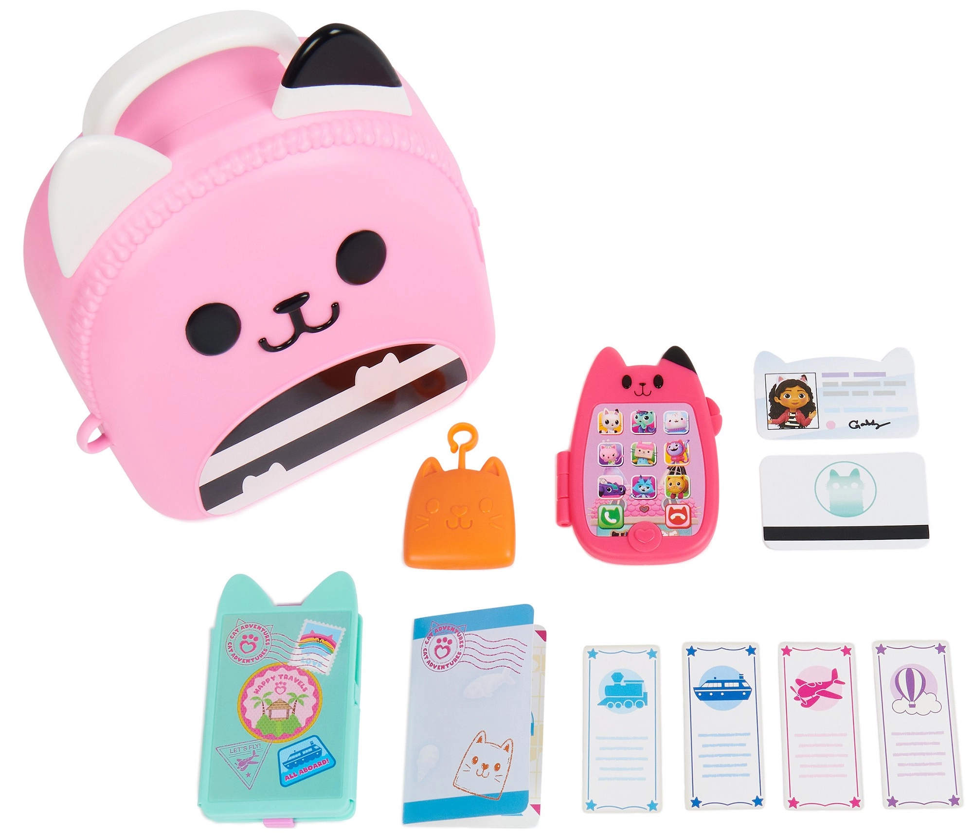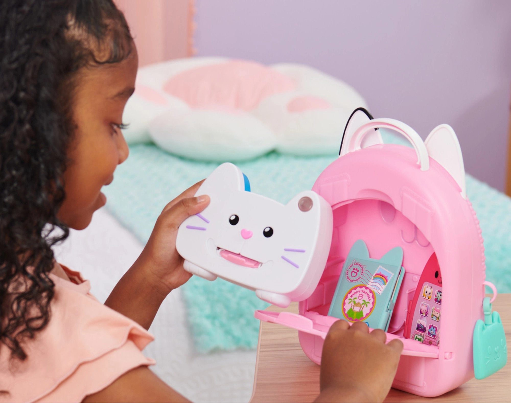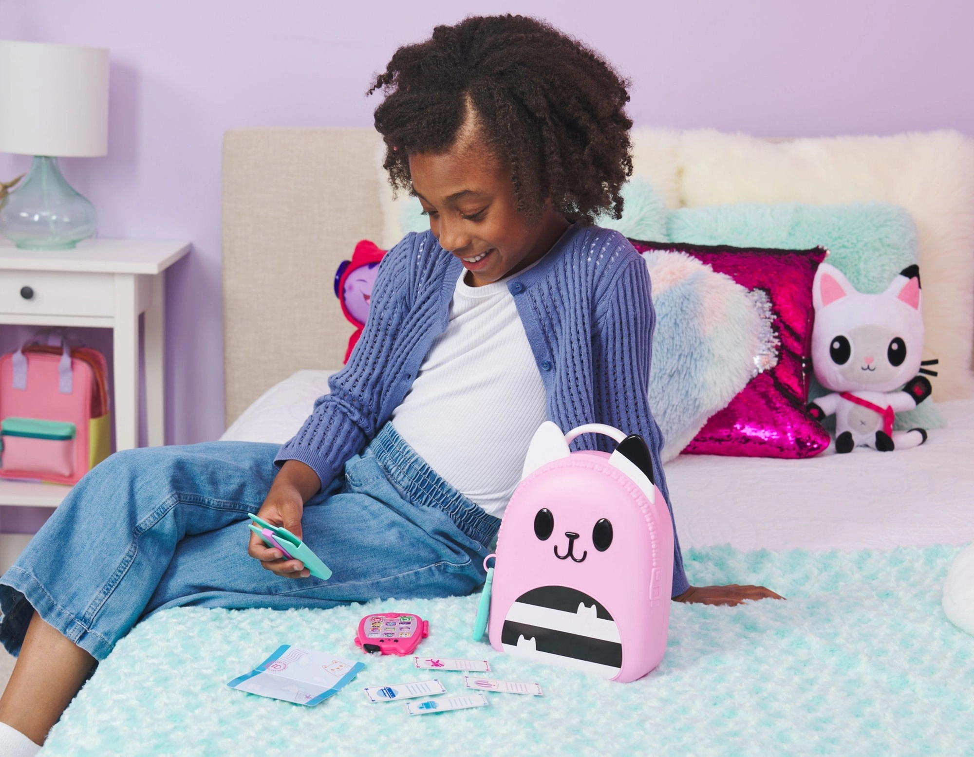 Prenesite djecu u svijet GABBY’S DOLLHOUSE s ovim preslatkim putnim setom. Sadrži rozi mačji ruksak, telefon koji se otvara, novčanik i isprave i karte za igru putovanja. Sve je kompaktno i prenosivo, osmišljeno za kreativnu igru i lako spremanje svih 11 dijelova izravno u ruksak.