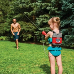 Vodena pištola u ruksaku doseže do 9 m, a zapremina 1 litra omogućuje dugu igru bez čestog dolijevanja. Odlično za ljetne igre u vrtu, zalijevanje biljaka i dječju igru vatrogasaca. Izdržljiva izrada namijenjena je djeci od 3 godine naviše.