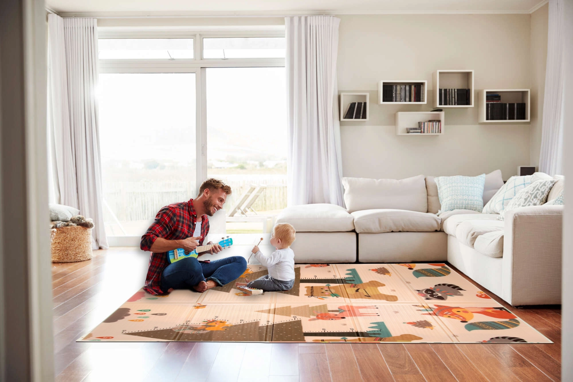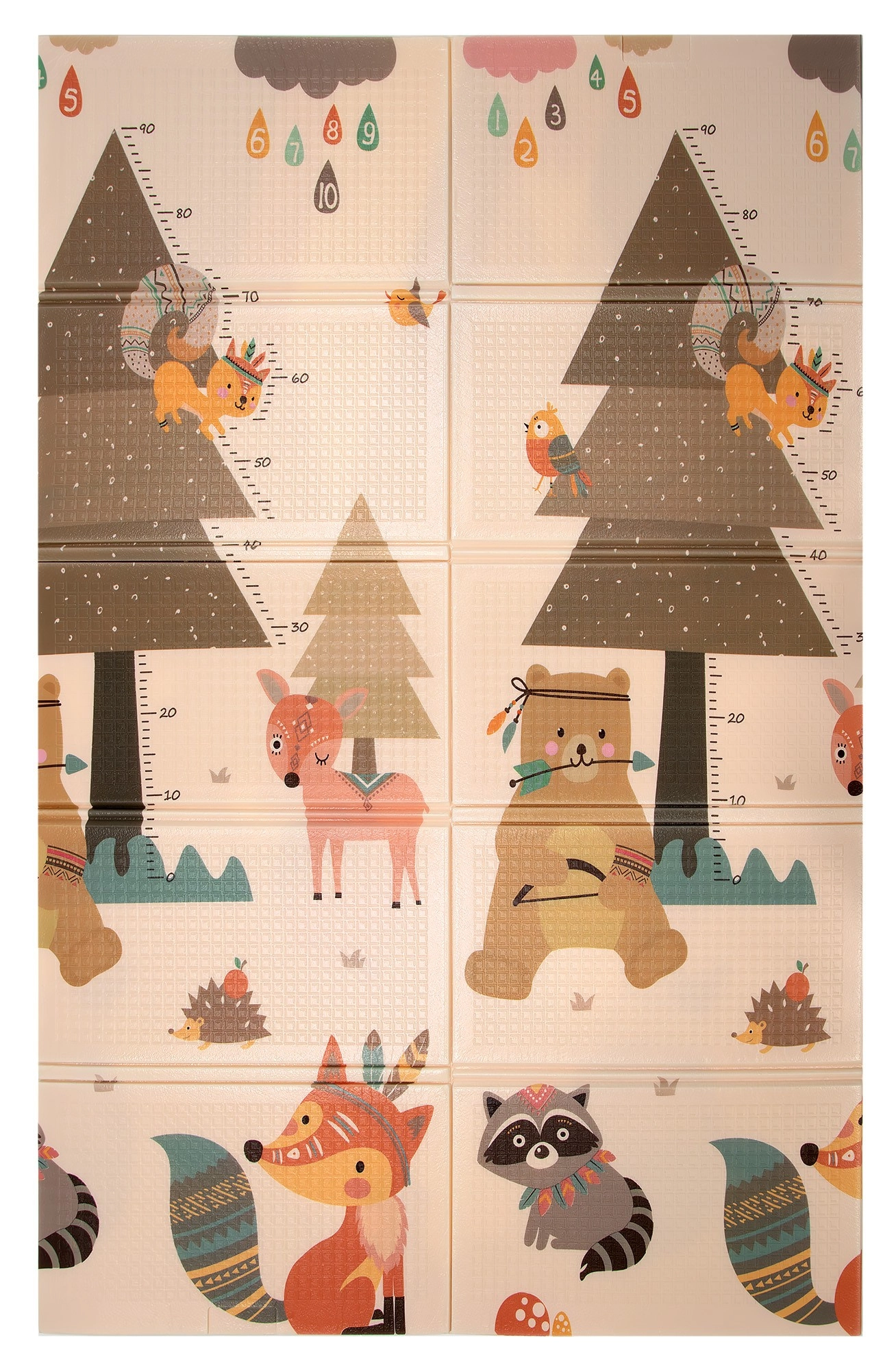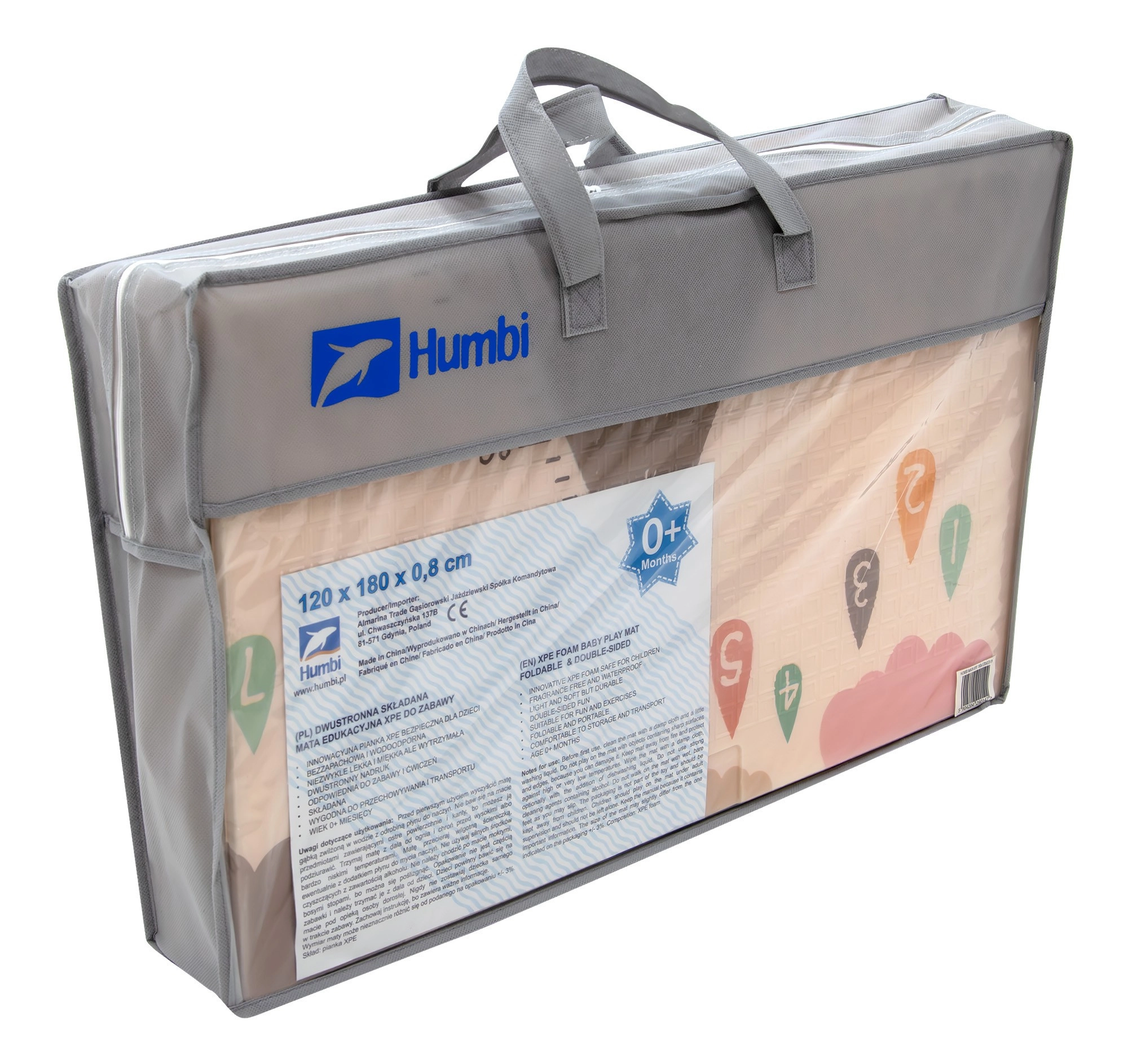 Podloga HUMBI od premium XPE pjene nudi izvrsnu amortizaciju, toplinsku izolaciju od hladnog poda i protukliznu površinu s blagim reljefom za sigurno puzanje i prve korake. Obostrana je – s jedne strane slatke šumske životinje, s druge motiv planina i avanture – tako da lako uskladite izgled s interijerom i djetetovim raspoloženjem.