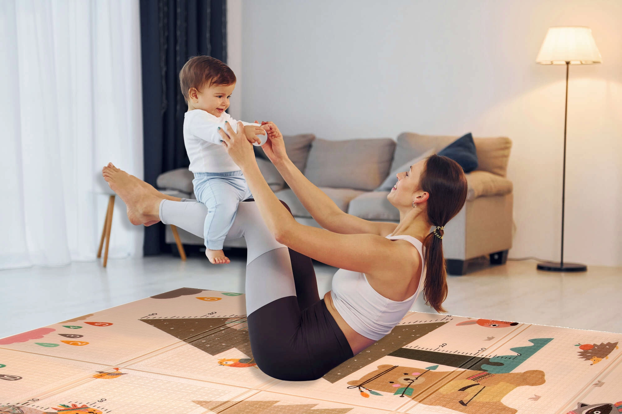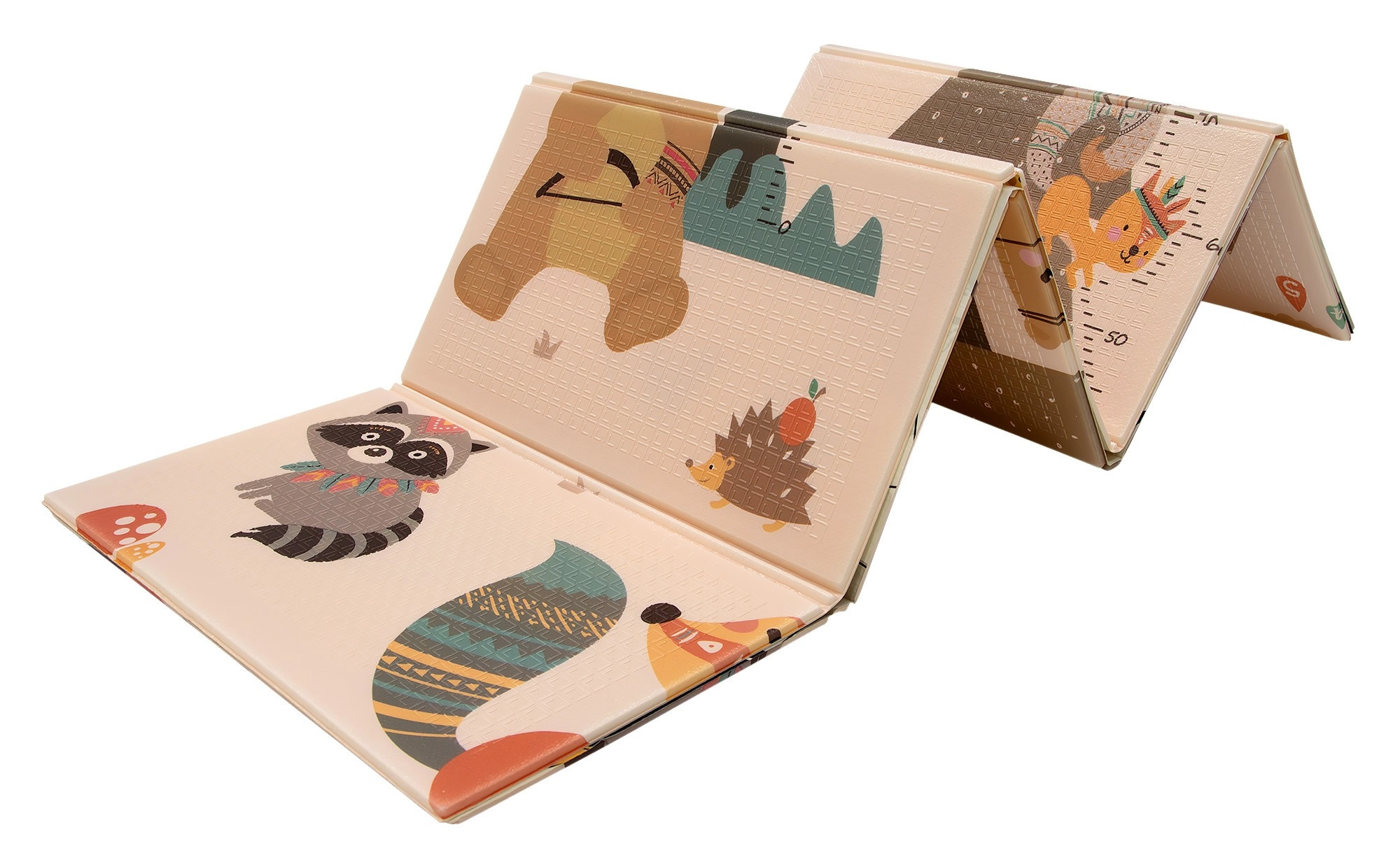 Dvije strane s veselim motivima potiču osjetilni razvoj i igru. Blago reljefna, protuklizna površina podupire sigurno puzanje i prve korake.