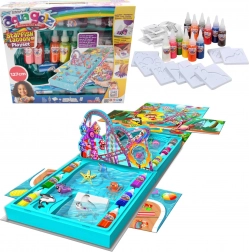 Uz veliki kreativni set Aqua Gelz Laguna djeca pretvaraju obojene gelove u preslatke 3D figurice. Dovoljno je pripremiti vodenu otopinu, ispuniti odabrani kalup gel bojama i uroniti – u trenu se plosnata slika pretvara u mekanu 3D figuricu, spremnu za igru i sakupljanje.