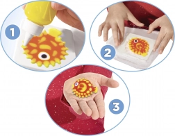 Idealno za razvoj kreativnosti, fine motorike i mašte. Zahvaljujući lako stlačivim bočicama, živopisnim bojama i višekratnim kalupima stvaranje je intuitivno i zabavno. Velika podloga s motivom lunaparka nudi prostor za vodeni spremnik, odlaganje gelova i gotovih uradaka.