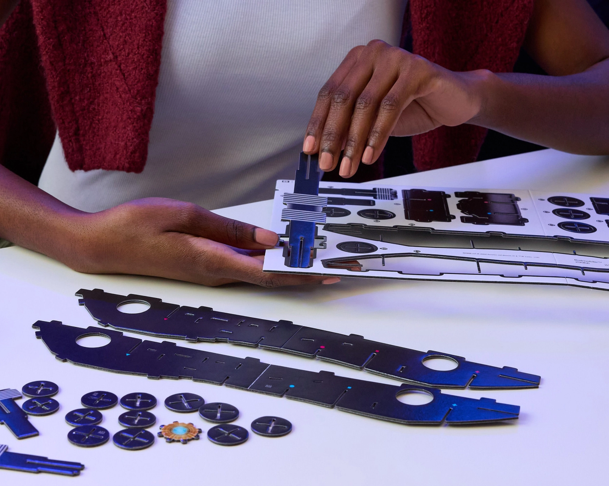 Predrezani dijelovi s vodičima jednostavno se istisnu i spoje klikom. Jasan priručnik vodi vas kroz gradnju korak po korak.