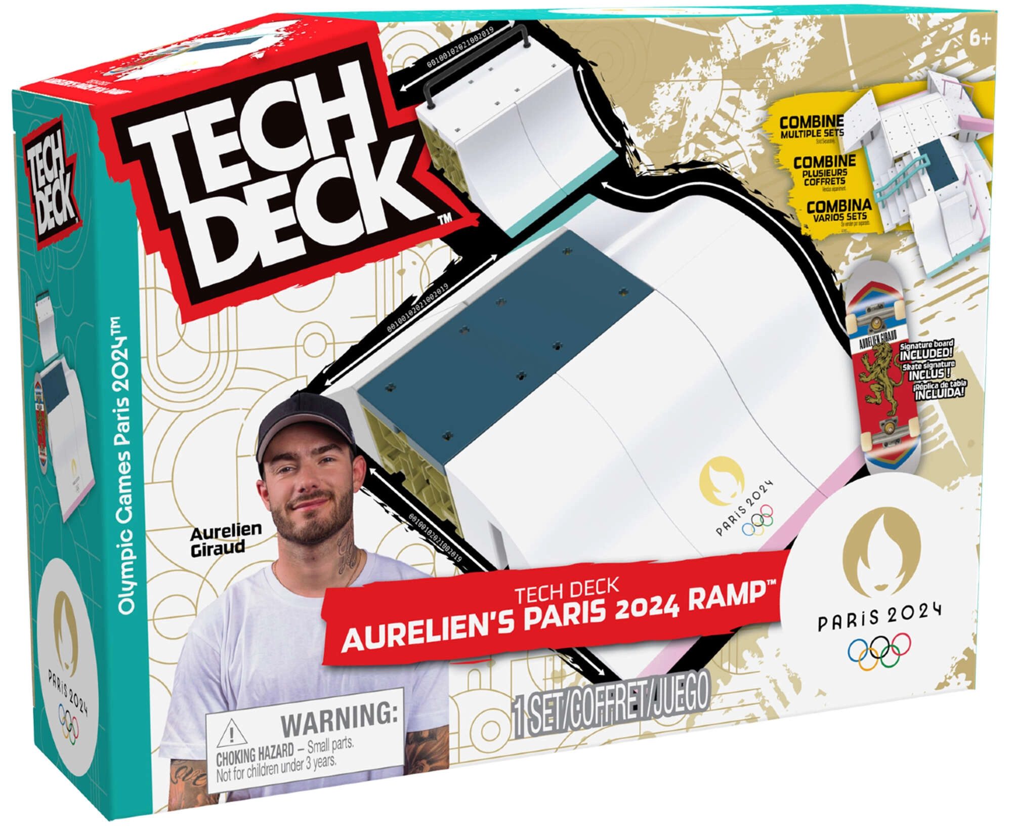 Doživite atmosferu olimpijskog skateboardinga s ekskluzivnim setom Tech Deck Aurelien Giraud Paris 2024. Robusni plastični dijelovi, četvrt-kružni radijusi, grind rail i platforme omogućuju fluidne line kombinacije, ollie, grindove i skokove – sve to na detaljno izrađenoj mini dasci.