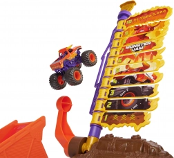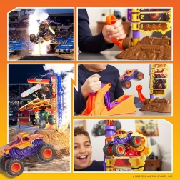 Set je idealan za samostalnu igru i natjecanja s prijateljima. Promišljena konstrukcija s čvrstom bazom u stilu “dirt” staze, upečatljive boje i autentična Monster Jam grafika pojačavaju realistični doživljaj. Kamion u mjerilu 1:64 s velikim gumama i visokim ovjesom lako podnosi slijetanja i novi nalet.