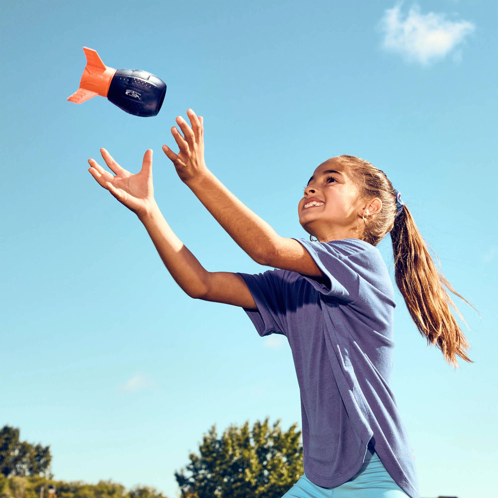 Otkrijte aktivnu zabavu s bacačkom raketom AEROBIE Super Sonic Fin Catch, koja je dizajnirana za stabilan let, ugodan prihvat i lako hvatanje. Mekani materijali osiguravaju sigurnost pri igri, dok aerodinamične peraje održavaju preciznu putanju leta i na većim udaljenostima.