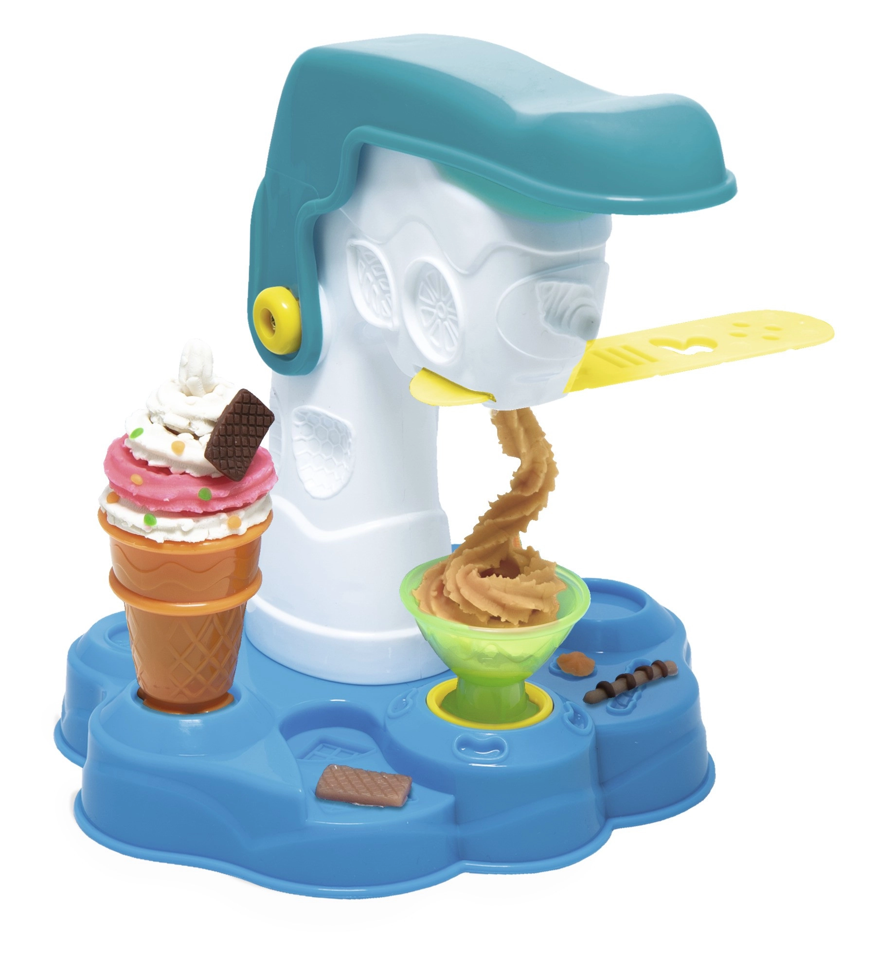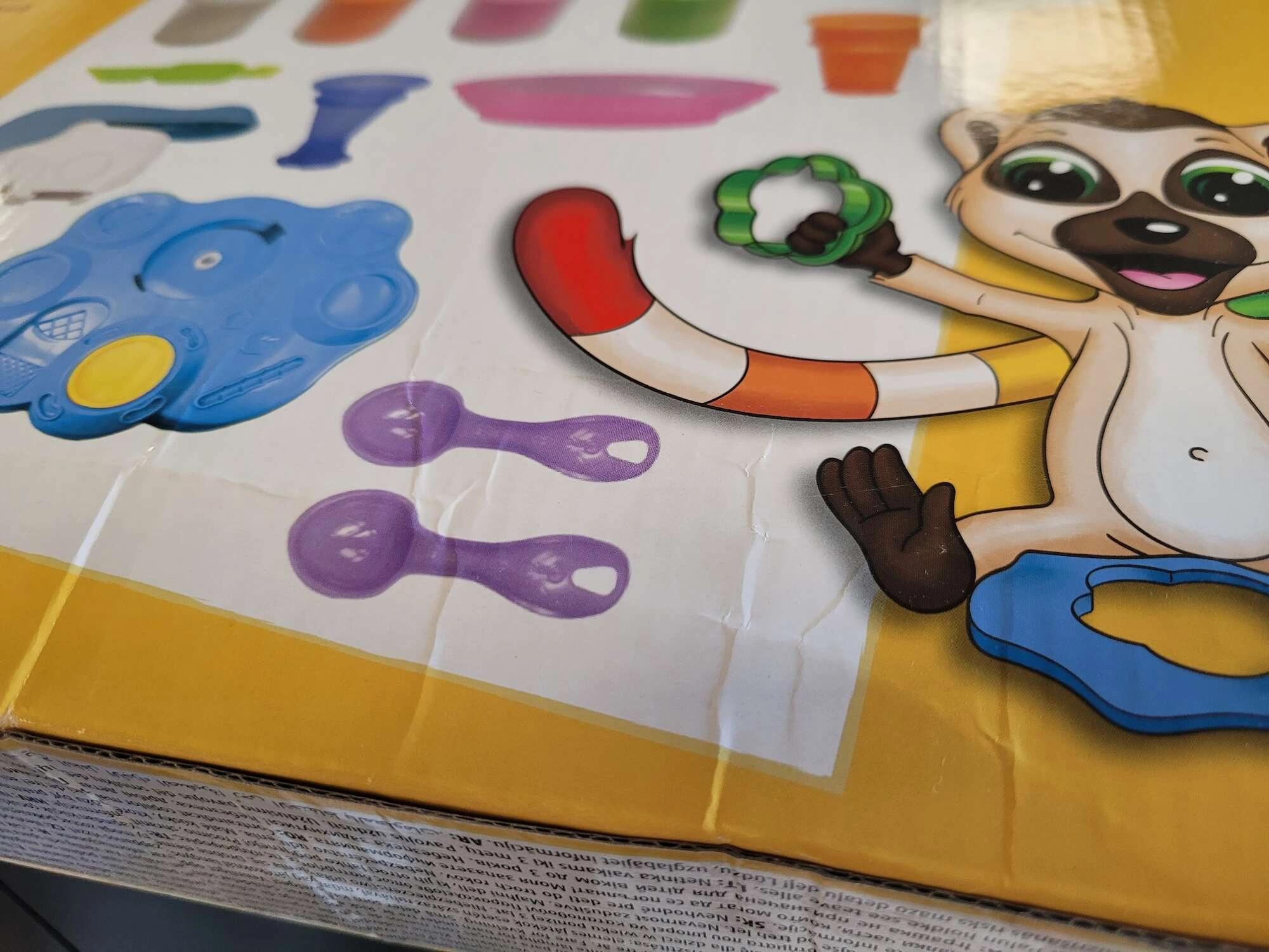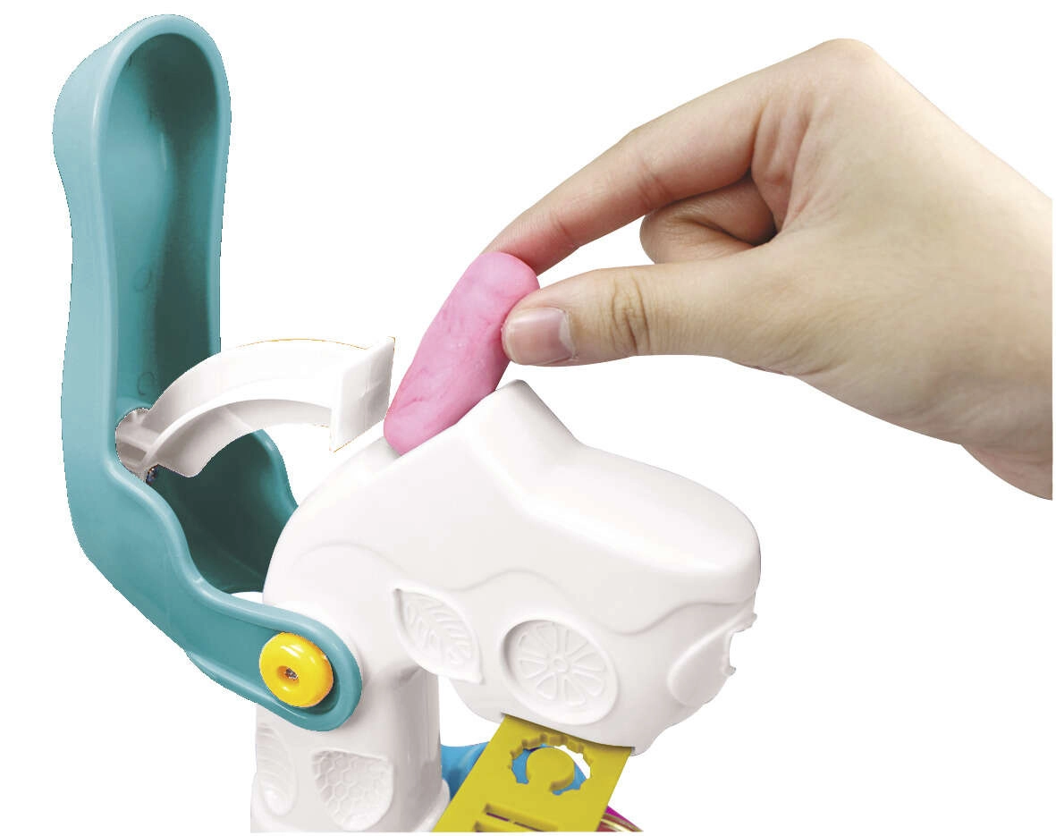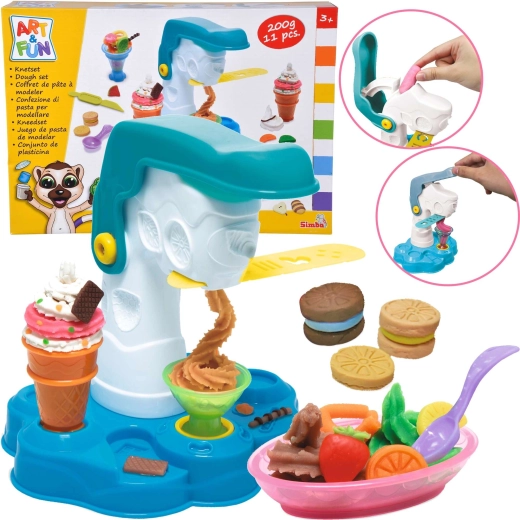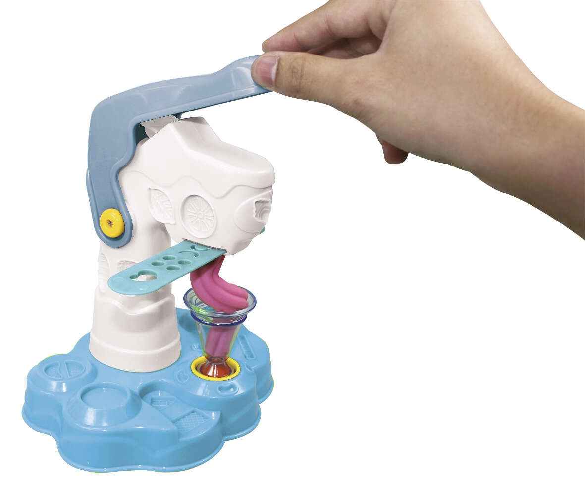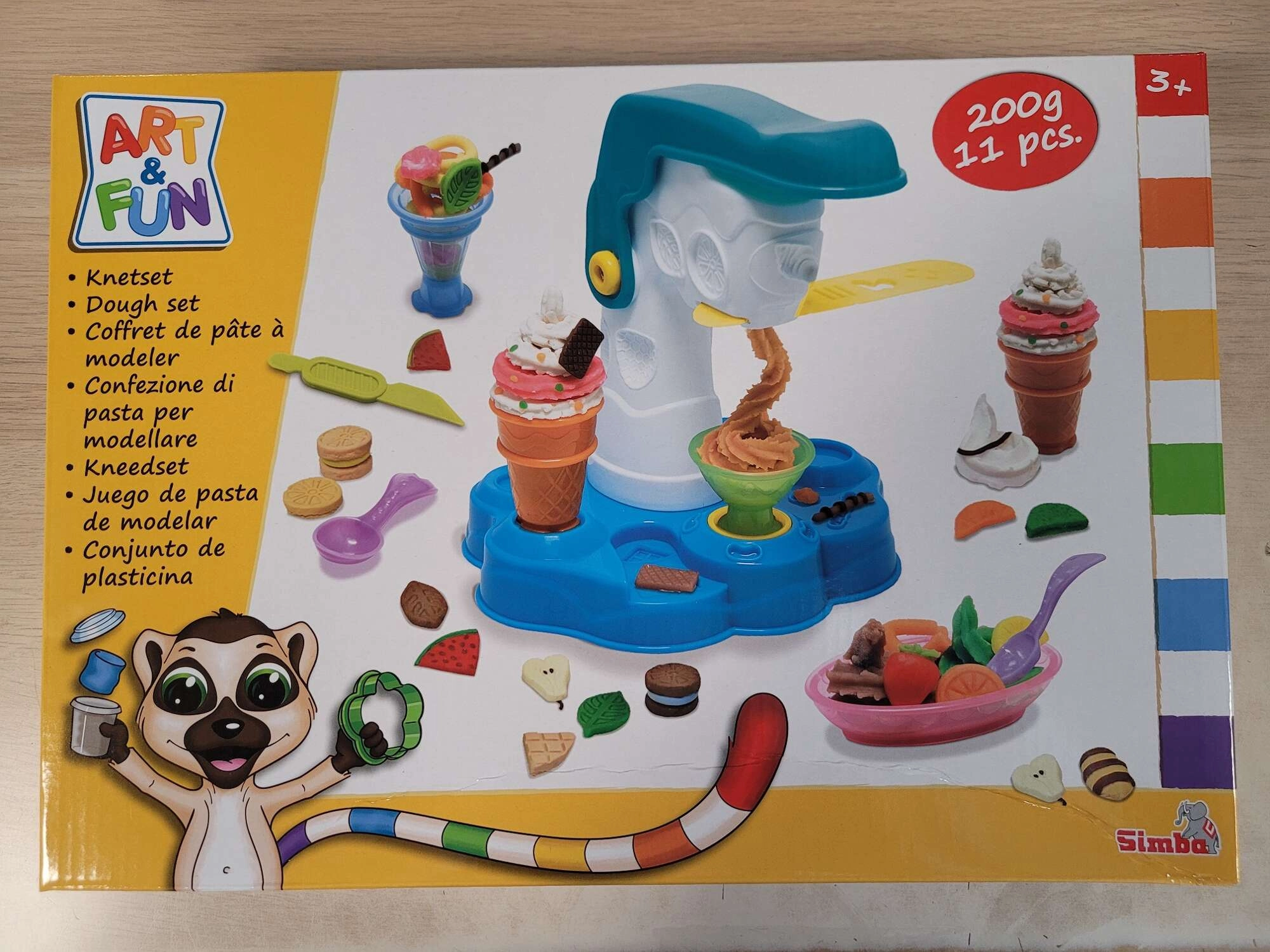 Ova zabavna sladoledarnica omogućuje djeci istiskivanje “kuglica”, ukrašavanje posipom i slaganje u slatke čašice i zdjelice. Zahvaljujući bogatom priboru, mali slastičari mogu kombinirati boje i oblike te poslužiti vlastite deserte – od klasičnih sladoleda do duginih poslastica s “preljevom” i “voćem”.