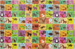 Jedna strana s veselom abecedom i životinjama, druga s oslikanim gradićem i cestama. Dijete vježba slova i maštu vozeći autiće.