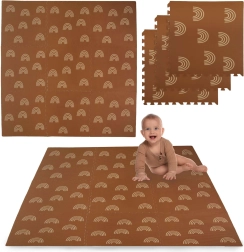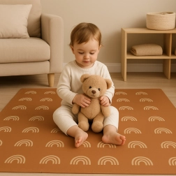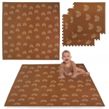 Pjenasta podloga HUMBI s motivom nježnih dužnih lukova u neutralnoj smeđoj boji uklapa se u svaki interijer i istodobno štiti dijete i pod. Zahvaljujući debljini od 1 cm odlično ublažava udarce i izolira od hladnoće, pa je idealna za parket, pločice i laminat. Pojedine dijelove s puzzle spojnicama jednostavno povezujete u veću površinu ili prilagođavate uskim prostorima.