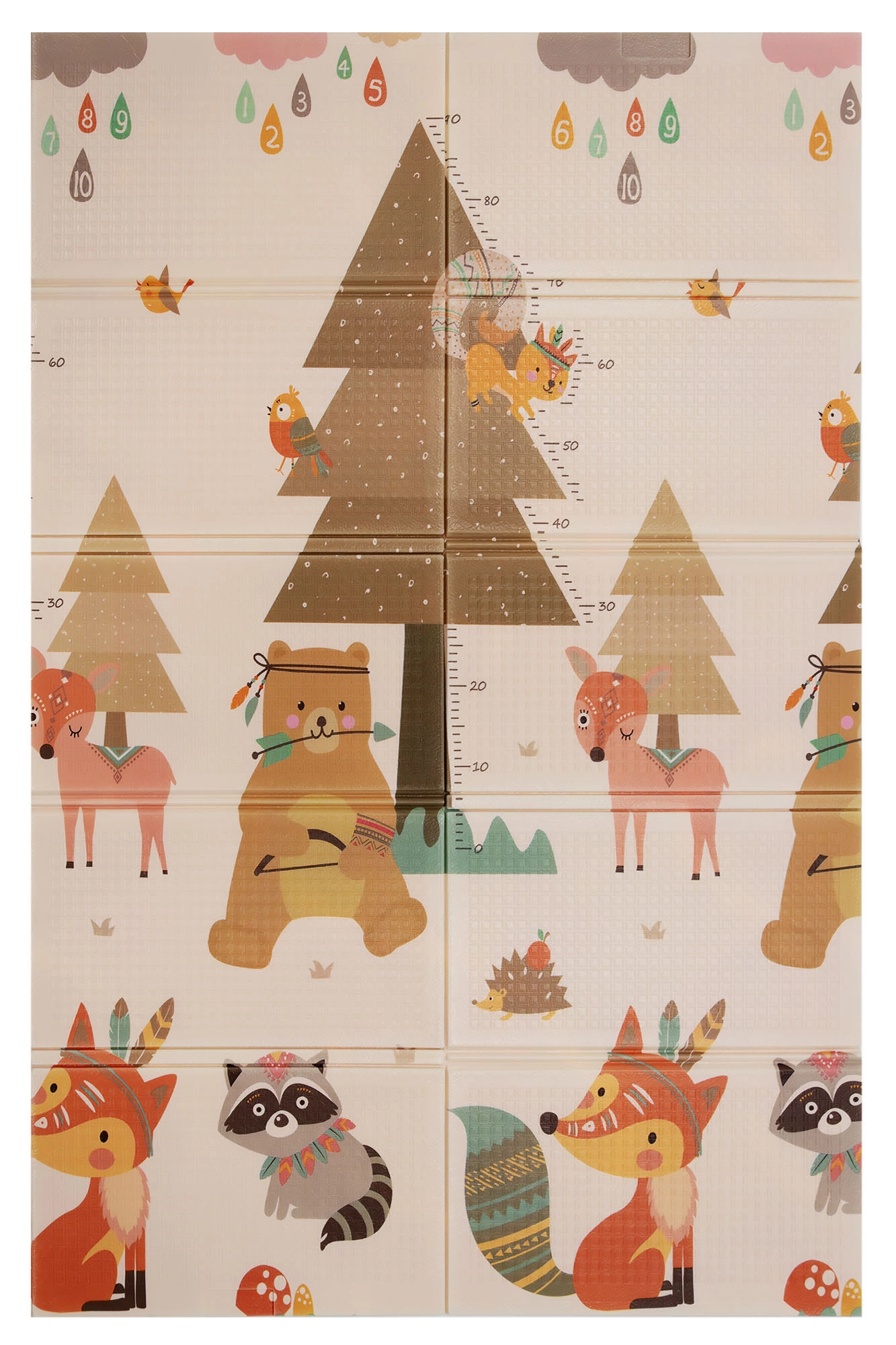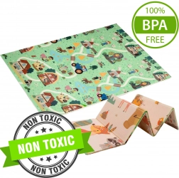 Premium pjena XPE je bez mirisa, netoksična i izdržljiva. Zahvaljujući debljini od 0,8 cm izvrsno izolira od hladnoće i pruža udobno podlaganje pri puzanju i prvim koracima. Dvostrani tisak potiče osjetilni razvoj i kreativnu igru s autićima po cestama te upoznavanje životinja.