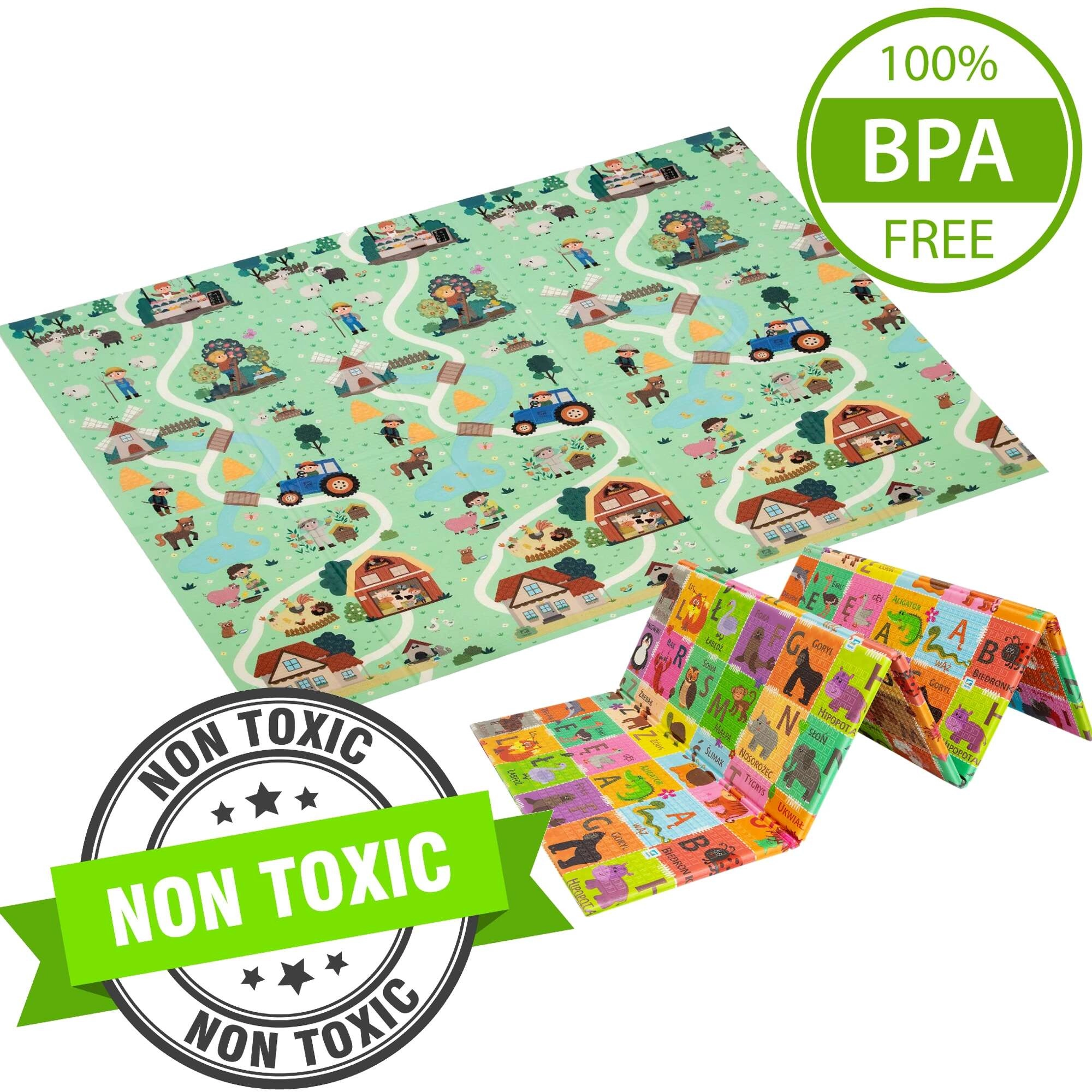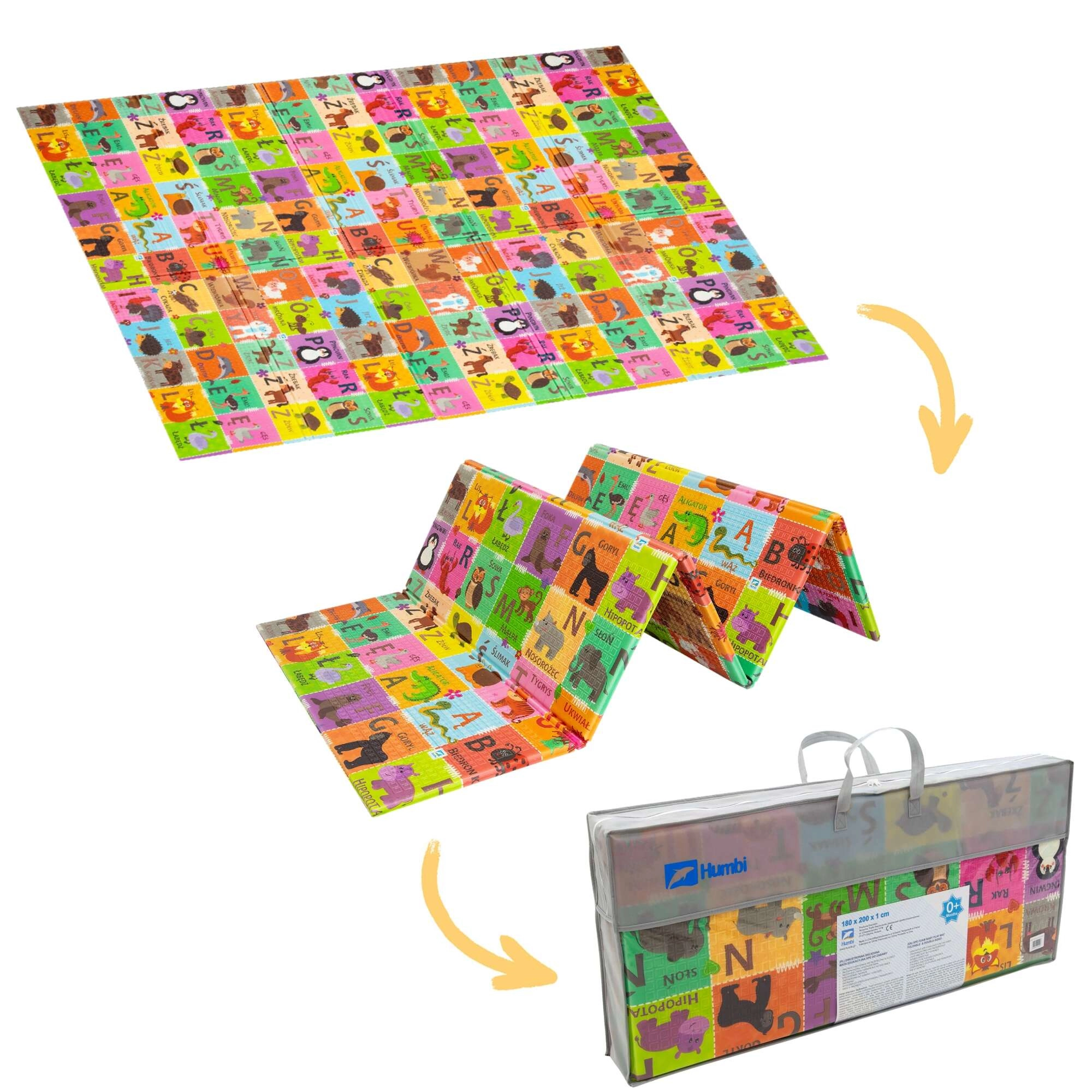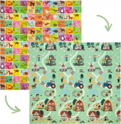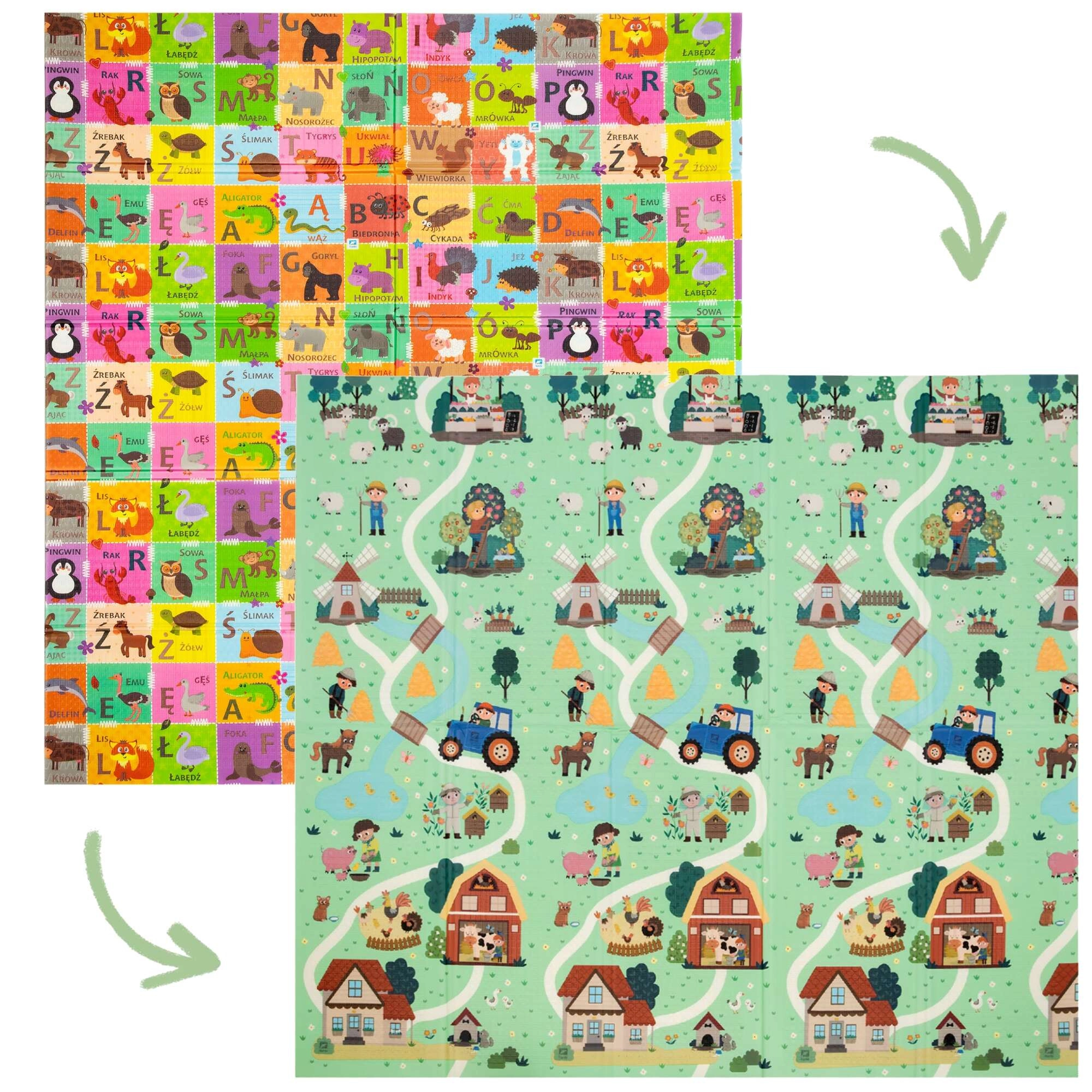 Dvoslojna sklopiva pjenasta podloga HUMBI 180 × 200 cm – abeceda i farma