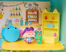 Dio pakiranja su elementi za igru koji potiču maštu i finu motoriku. Set je kompatibilan s Velikom Gabinom kućicom, pa ga lako uklopite u veću kolekciju. Odličan izbor za djecu od 3 godine naviše koja vole šarene likove i svijet mačjih prijatelja.
