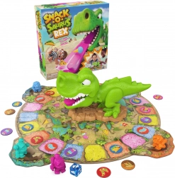 Pomozite gladnim spiljskim ljudima skupljati ukusne zalogaje i izbjegnite zločesti dinosaurov jezik u igri SNACK‑O‑SAURUS REX brenda Spin Master. Jednostavna pravila, brza i dinamična igra, zabava za djecu od 5 godina i cijelu obitelj. Cilj je prikupiti dva para zalogaja, ali pozor – dinosaurus vas može poslati natrag ili vam uzeti plijen!