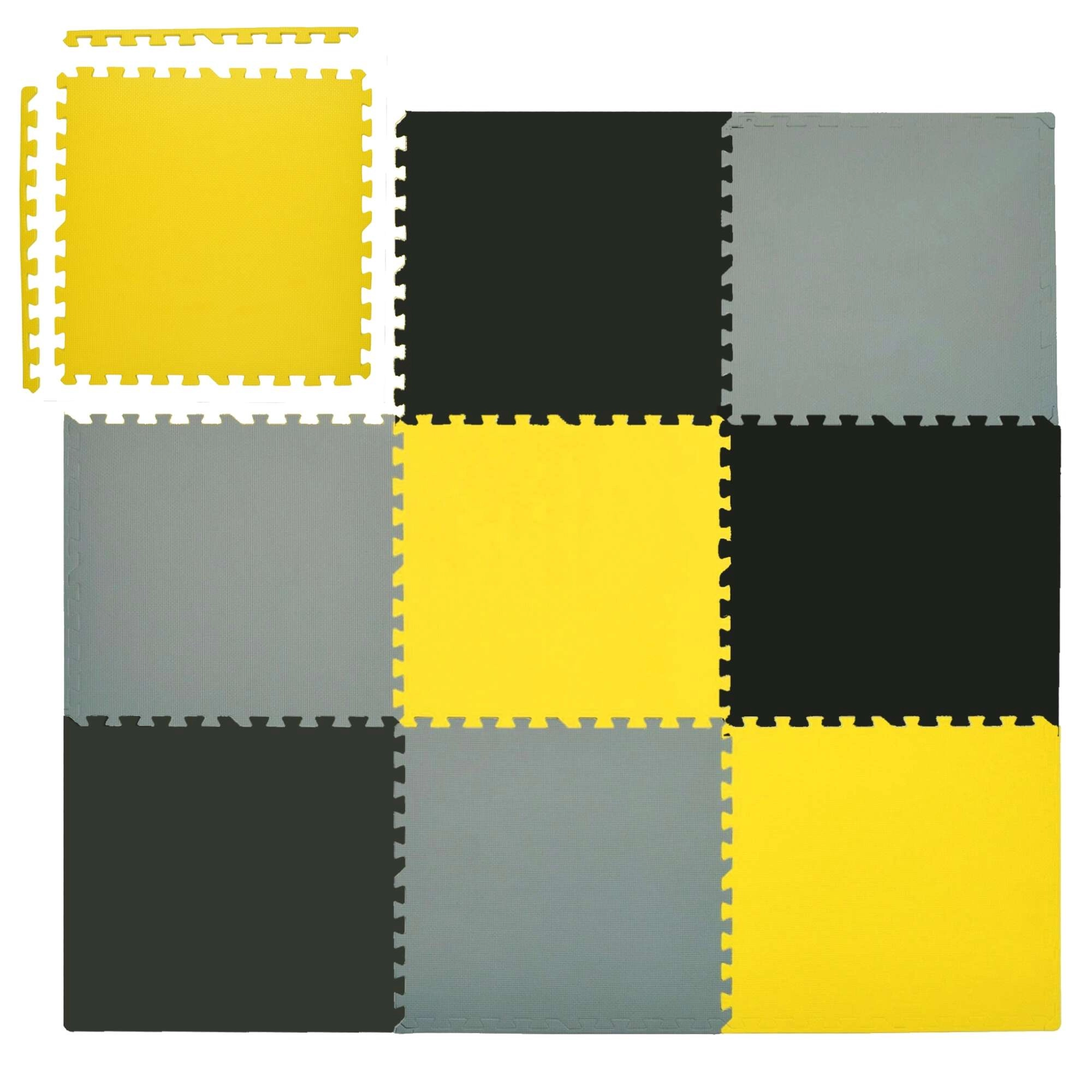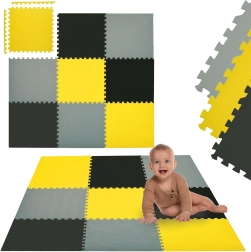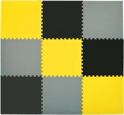 Pjenaste puzzle HUMBI stvaraju prilagodljivu igraću površinu u blagim bojama žute, sive i crne. Dijelovi precizno naliježu jedan u drugi, pa brzo sastavite sigurno mjesto za igru na svakoj tvrdoj podlozi. Zahvaljujući debljini od 1 cm podloga izolira od hladnoće i ublažava padove, što ćete cijeniti pri prvim pokušajima sjedenja, puzanja i hodanja.