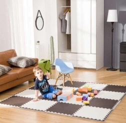 Debela 1 cm EVA pjena učinkovito prigušuje udarce i izolira od hladnog poda. Protuklizna tekstura potiče sigurnost pri puzanju, penjanju i hodanju.