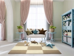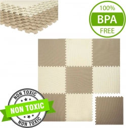 Pjenaste puzzle HUMBI od kvalitetne EVA pjene pružaju djeci siguran prostor za prvo okretanje, puzanje i korake. Zahvaljujući debljini od 1 cm izvrsno amortiziraju padove i izoliraju hladnoću s pločica, parketa i laminata. Materijal je vodootporan, pa se podloga lako održava – dovoljno je prebrisati vlažnom krpom. Suptilni krem i bež tonovi nenametljivi su i upotpunjuju moderan interijer.
