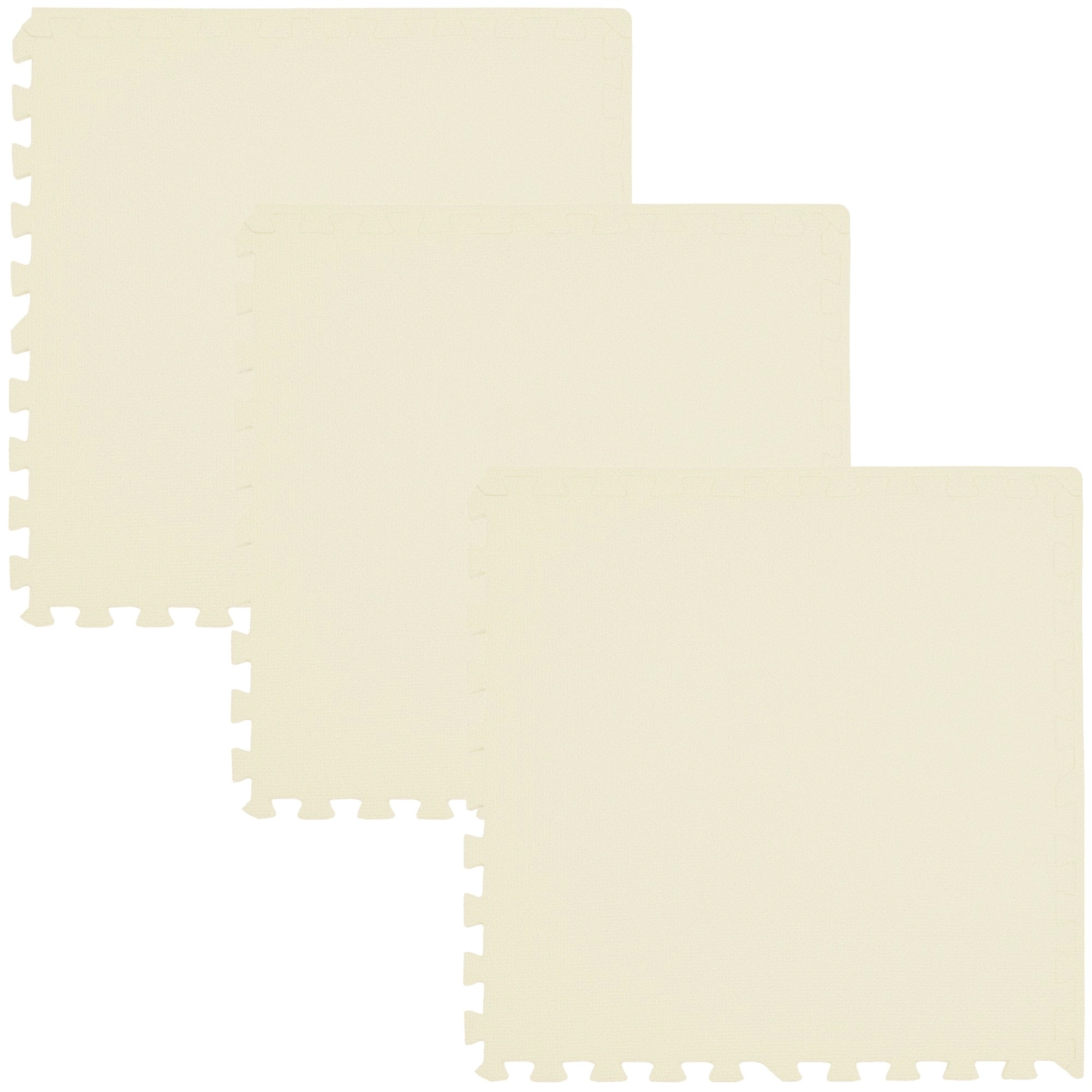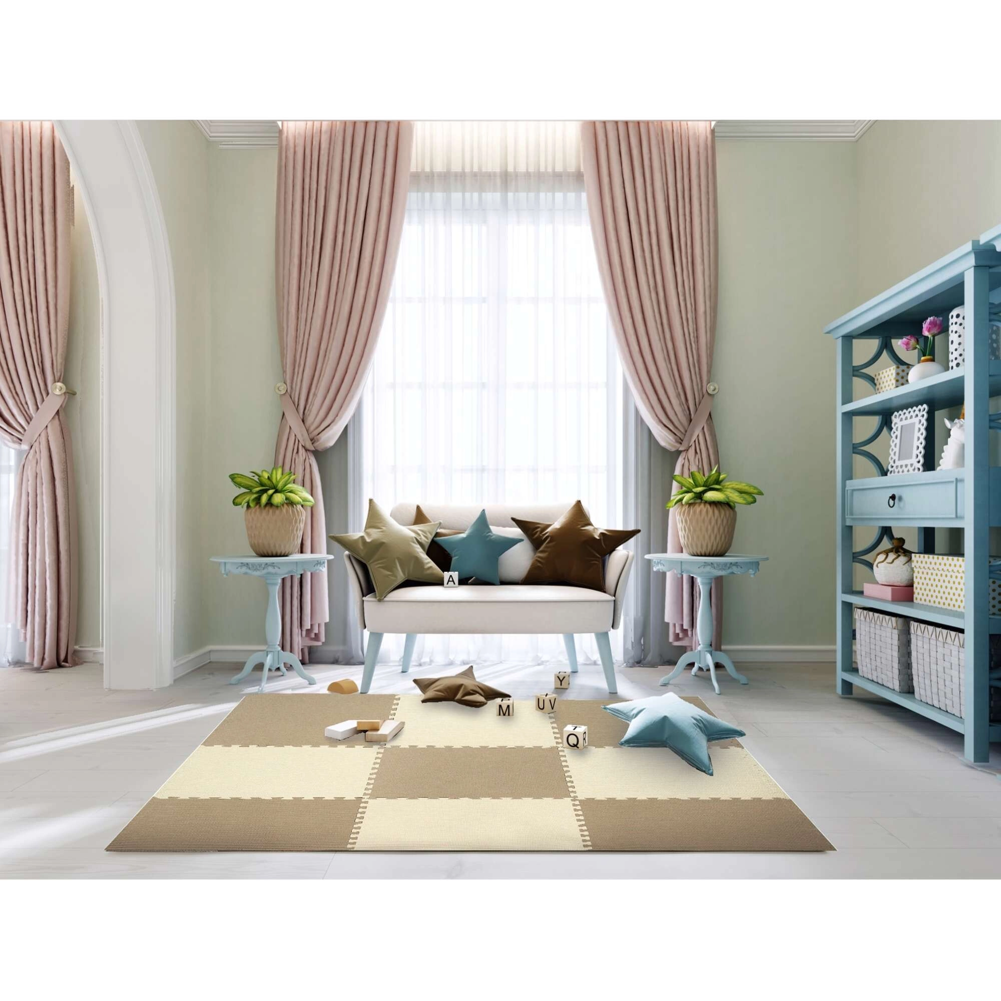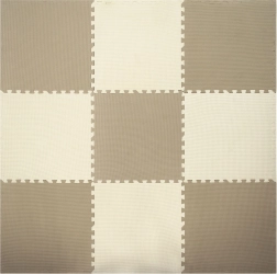 Praktična dječja pjenasta podloga HUMBI dimenzija 180 × 180 cm od elastične EVA pjene stvara za bebe i veću djecu mekano, sigurno i protuklizno mjesto za igru. Set od 9 velikih ploča 60 × 60 cm s 18 rubnih letvica lako se slaže kao puzzle, vodootporan je, jednostavan za čišćenje, dobro izolira hladnoću s poda i prigušuje udarce. Neutralne krem-bež boje uklapaju se u svaki interijer, a elemente je moguće proširiti dodatnim setom.