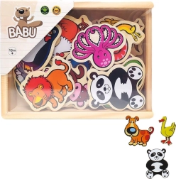 Set sadrži životinje poput žirafe, dupina, pingvina i drugih raznolikih stvorenja. Magneti ne samo da zabavljaju, već i educiraju te su izvrstan alat za razvoj prepoznavanja životinja i boja.