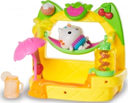 - Sadržaj pakiranja: figurica Cakey, balkonski okvir s visećom mrežom, voćni štand, čaša, suncobran, voće/dodaci, tajna kutijica.