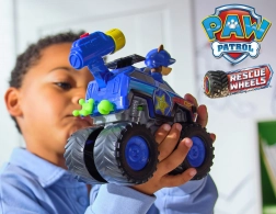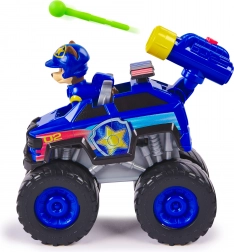 Terensko vozilo Chase spremno je za svaku avanturu. Zahvaljujući velikim, slobodno okretajućim kotačima savladava i „off-road” vožnju po dječjoj sobi, a izbacivač s kukom pobrinut će se za napete spasilačke akcije. Figurica Chase s kacigom sjedi ravno za volanom i potiče priče iz svijeta PAW PATROL.