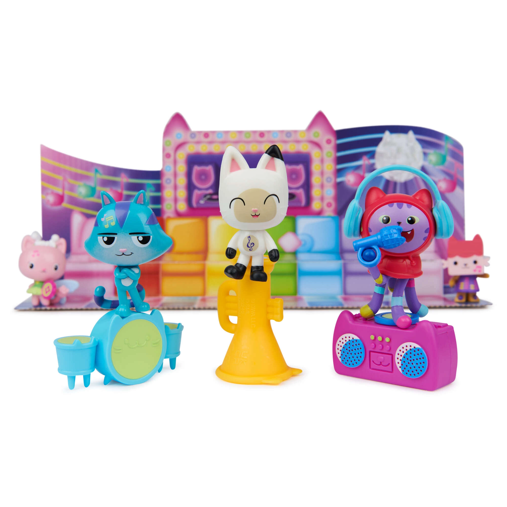 Dio seta su sklopiva pozadina pozornice, figurice junaka, bubnjevi, truba, boombox, mikrofoni i drugi rekviziti. Tu je i iznenađenje u slatkoj kutijici koje će igri dati novi poticaj. Set je idealan za samostalnu igru ili kao dodatak drugim kućicama i setovima GABBY'S DOLLHOUSE.