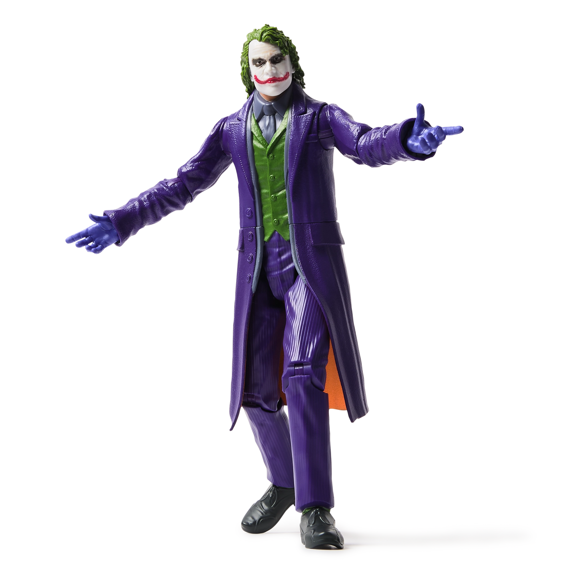 Detaljno izrađena figurica Jokera iz filma The Dark Knight u mjerilu oko 30 cm razveselit će kolekcionare i djecu. Nudi mnogo pokretnih zglobova za dinamične poze, ikonični ljubičasti kaput, zelenu kosu i vjerno kolorističko izvedenje. Idealno za igru i izlaganje.