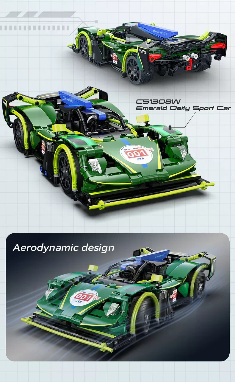 Sportski automobil PHANTOM WING u ikoničnoj zelenoj boji oduševit će detaljnom izradom i glatkom vožnjom. Zahvaljujući dvostrukom načinu upravljanja birate između klasičnog 2,4 GHz upravljača i mobilne aplikacije (Android/iOS) s više načina vožnje. Kompatibilnost dijelova s drugim setovima omogućuje beskrajne mogućnosti proširenja.