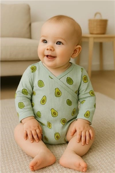 Muselinsko preklopno body NEW BABY Avocado idealno je za svakodnevno nošenje – nježno tkan, prozračan materijal prirodno “diše” i pomaže regulirati temperaturu, čime se smanjuje rizik od pregrijavanja. Cjeloplošni print s avokadima daje veseo izgled, a kvalitetan muslin od 100% pamuka omiljet će se i djeci i roditeljima.