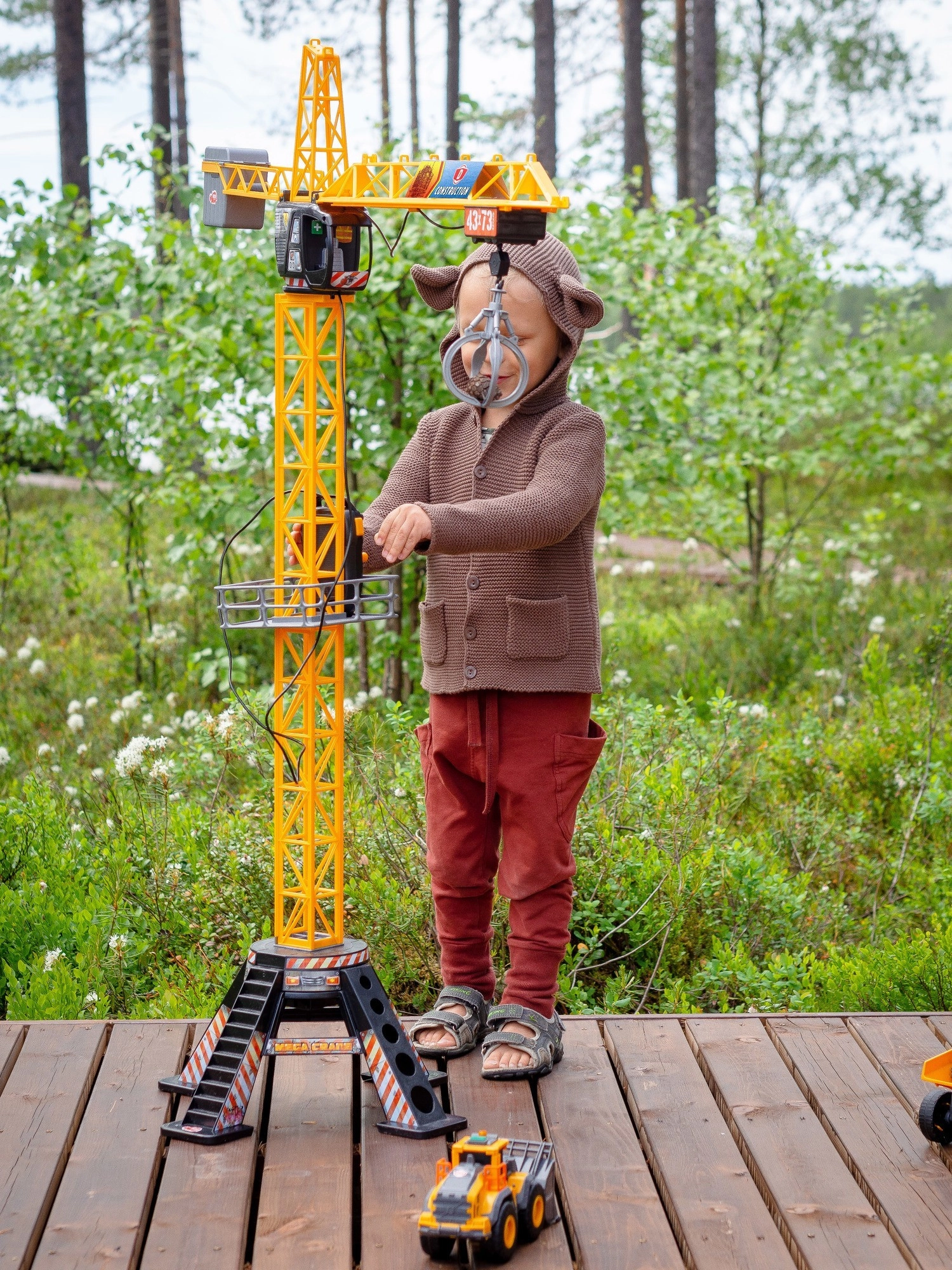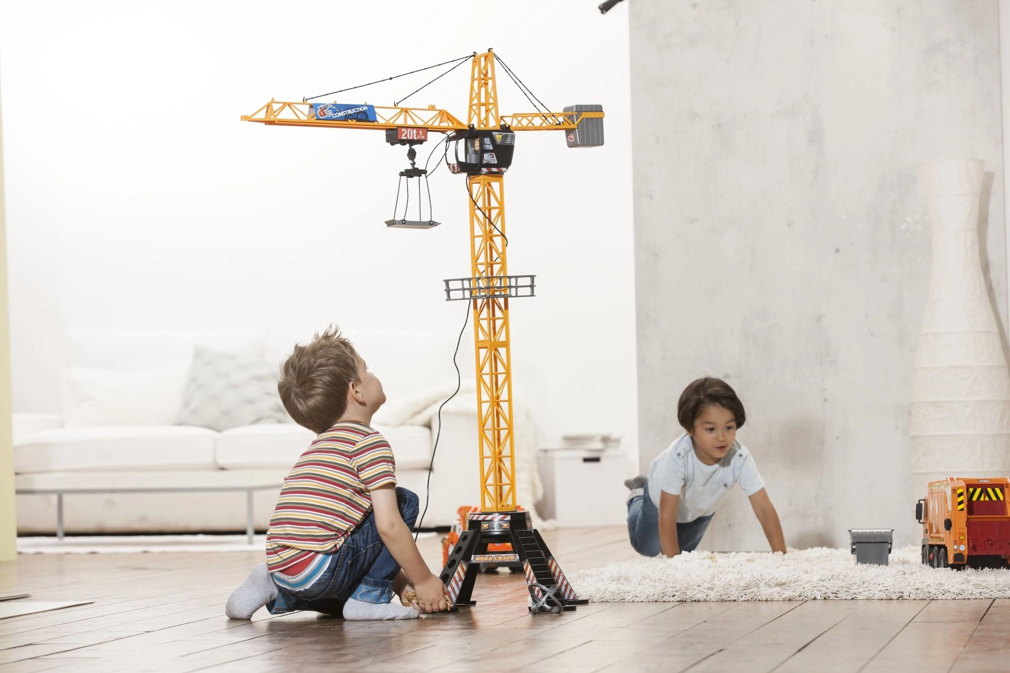 Impozantna visina dizalice, detaljna rešetkasta konstrukcija i kabina operatera donose djeci stvaran doživljaj gradnje kod kuće i na otvorenom.