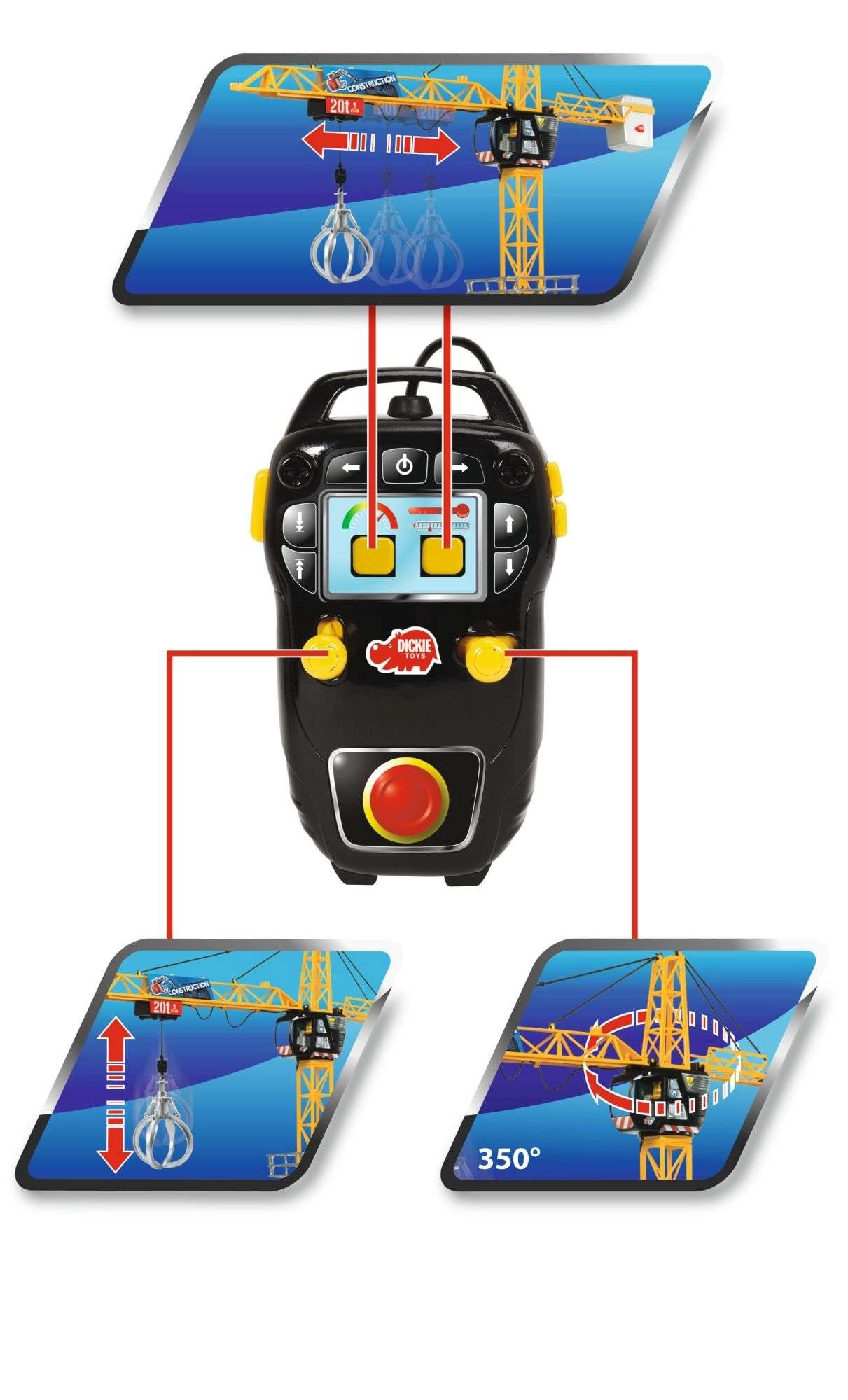 Ova dječja dizalica visine 120 cm donosi djeci autentičnu atmosferu gradilišta. Zahvaljujući kabelskom upravljanju mali “operateri” mogu okretati krak za 360°, mijenjati nastavke i sigurno prenositi sitne predmete na priloženoj platformi ili pomoću grabilice. Robusna četverokraka baza osigurava stabilnost tijekom cijele igre.