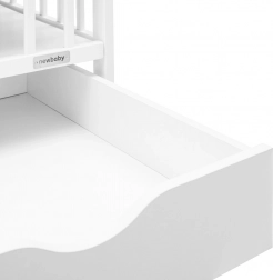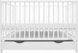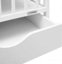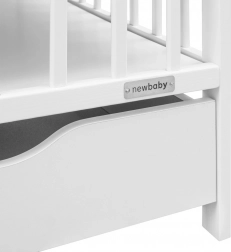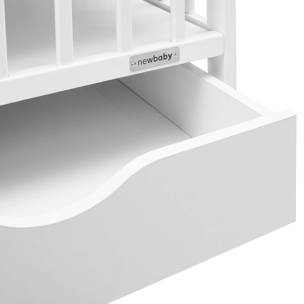 Praktičan i siguran dječji krevetić NEW BABY Basic u bijeloj boji kombinira masivno borovo drvo, 3 položaja podnice i integriranu ladicu za posteljinu ili potrepštine za bebu. Certificirani materijali, prozračna podnica za bolju cirkulaciju zraka i 3 uklonjive prečke za lakši pristup osiguravaju udobnost i sigurnost svaki dan.