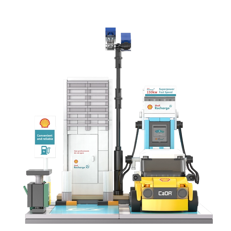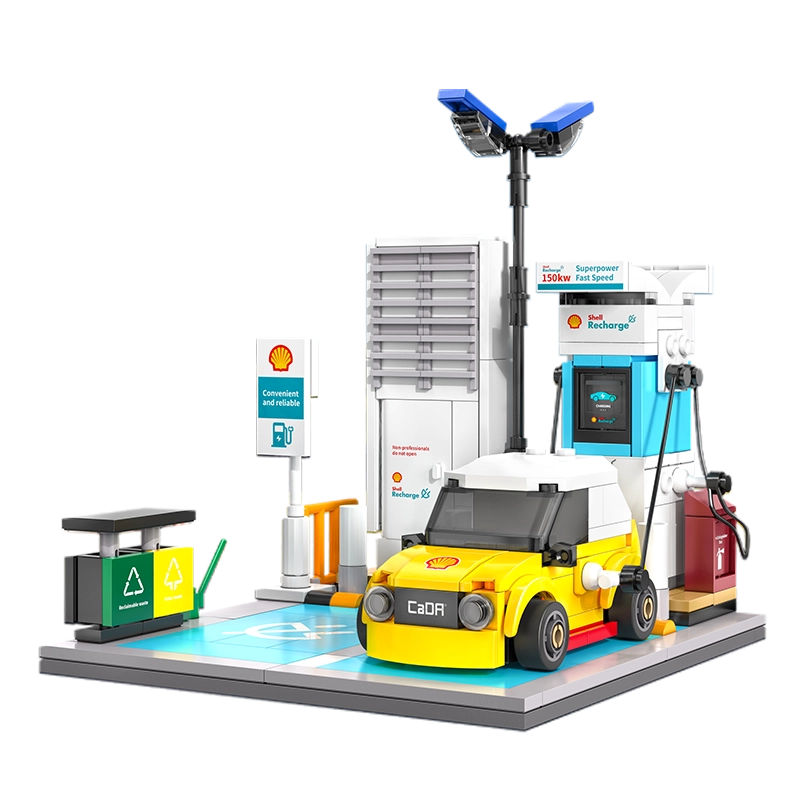 Ovaj CaDA set donosi autentičnu mini EV stanicu za punjenje SHELL sa žutim vozilom i pomno razrađenim detaljima. Uživajte u glatkom sastavljanju, stvarnim elementima napajanja i mnoštvu mogućnosti za maštovitu igru – od parkiranja preko spajanja kabela do “punjenja” auta.