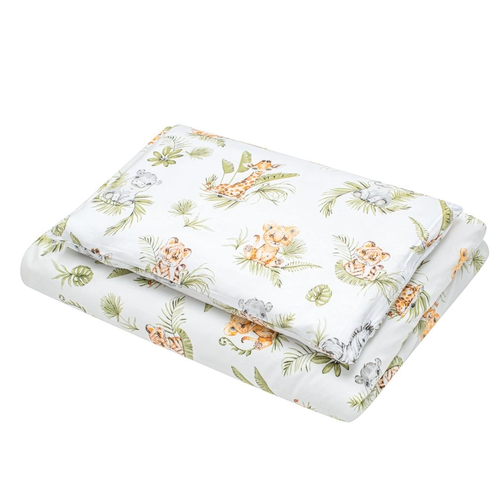 Priuštite svojoj bebi udobnost i sigurnost s 3-dijelnim setom za krevetić NEW BABY Jungle. Posteljina je izrađena od 100% prirodnog pamuka koji je mekan na dodir, prozračan i nježan prema osjetljivoj dječjoj koži. Dizajn s umirujućim bojama i motivom džungle stvara ugodno okruženje za san i odmor.