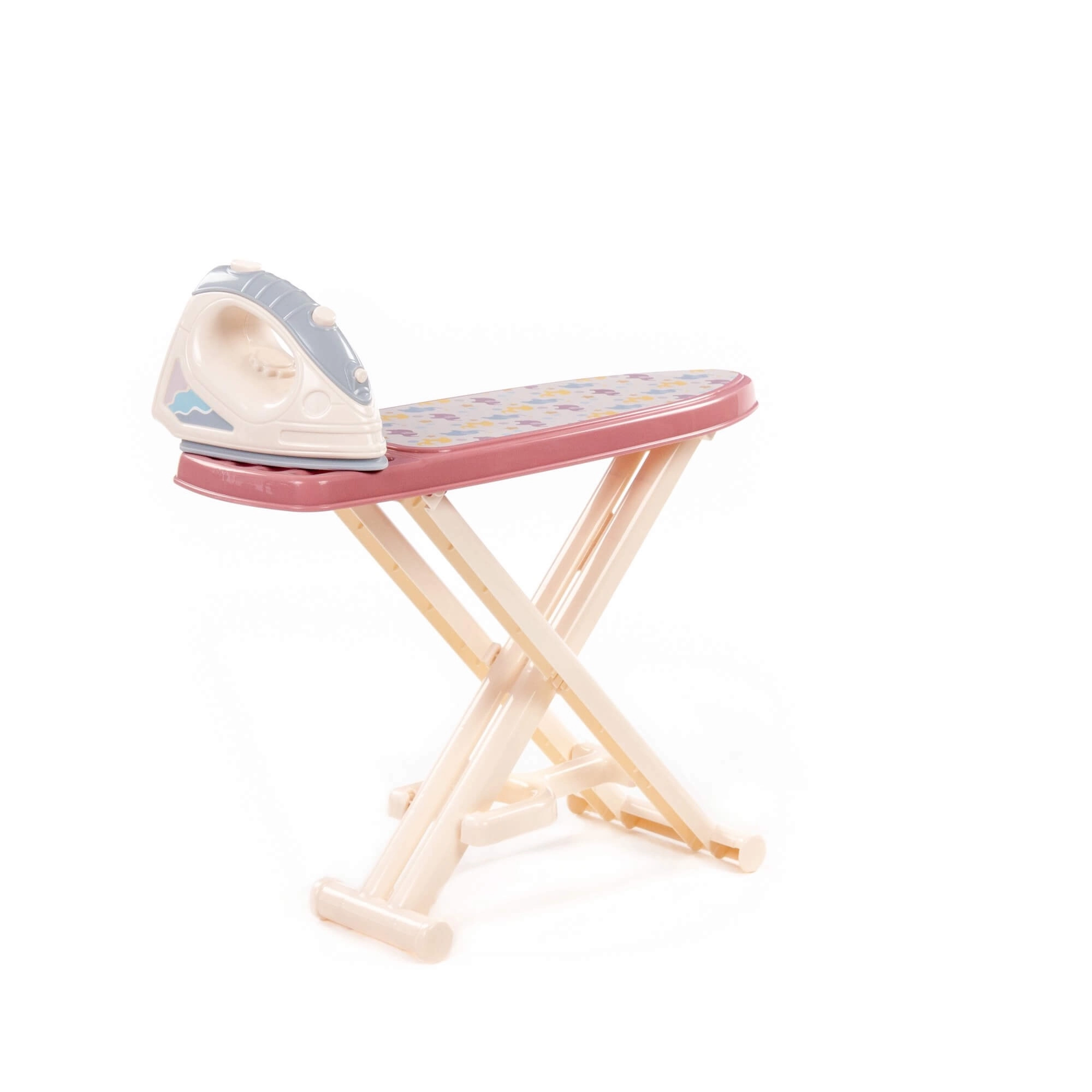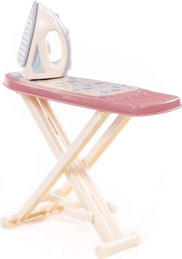 Zabavni dječji set za peglanje s daskom i peglom za realističnu igru kućanstva. Sklopiva daska za peglanje štedi prostor, lagana pegla za dječju ruku olakšava rukovanje i stabilna konstrukcija osigurava sigurnu igru.