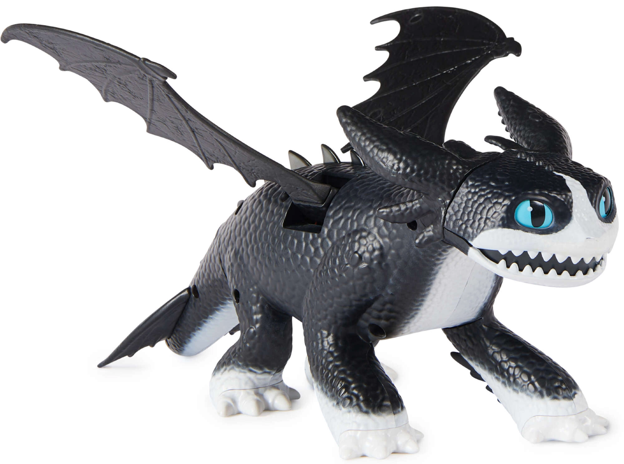 Ova pomno izrađena figura Noćne more, inspirirana svijetom DreamWorksa, donosi mnogo zabave djeci i kolekcionarima. Pritiskom tipke iza krila aktiviraju se zmajevi zvukovi i ljubičasti svjetlosni efekti u šiljcima i čeljusti, koji vjerno podsjećaju na ikonično ispaljivanje soničnog snopa. Robusna plastična izvedba s teksturiranim ljuskama i izraženim plavim očima potiče maštovitu igru i izlaganje na polici.