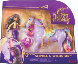 Uđite u svijet jezera Sparkle Lake i doživite avanture sa Sophiom i njezinim vjernim jednorogom Wildstarom. Lutka je odjevena u stajliš outfit inspiriran serijom UNICORN ACADEMY i zahvaljujući pokretnim udovima lako zauzima razne poze. Wildstar oduševljava duginom grivom i repom, zlatnim sedlom i uzdama za realistično jahanje.