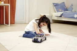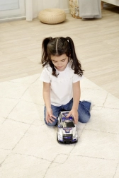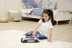 Zahvaljujući čvrstoj plastičnoj karoseriji i velikim kotačima auto je stabilan i spreman za svakodnevnu igru u interijeru. Idealan kao poklon za male ljubitelje akcije i brzih vožnji.