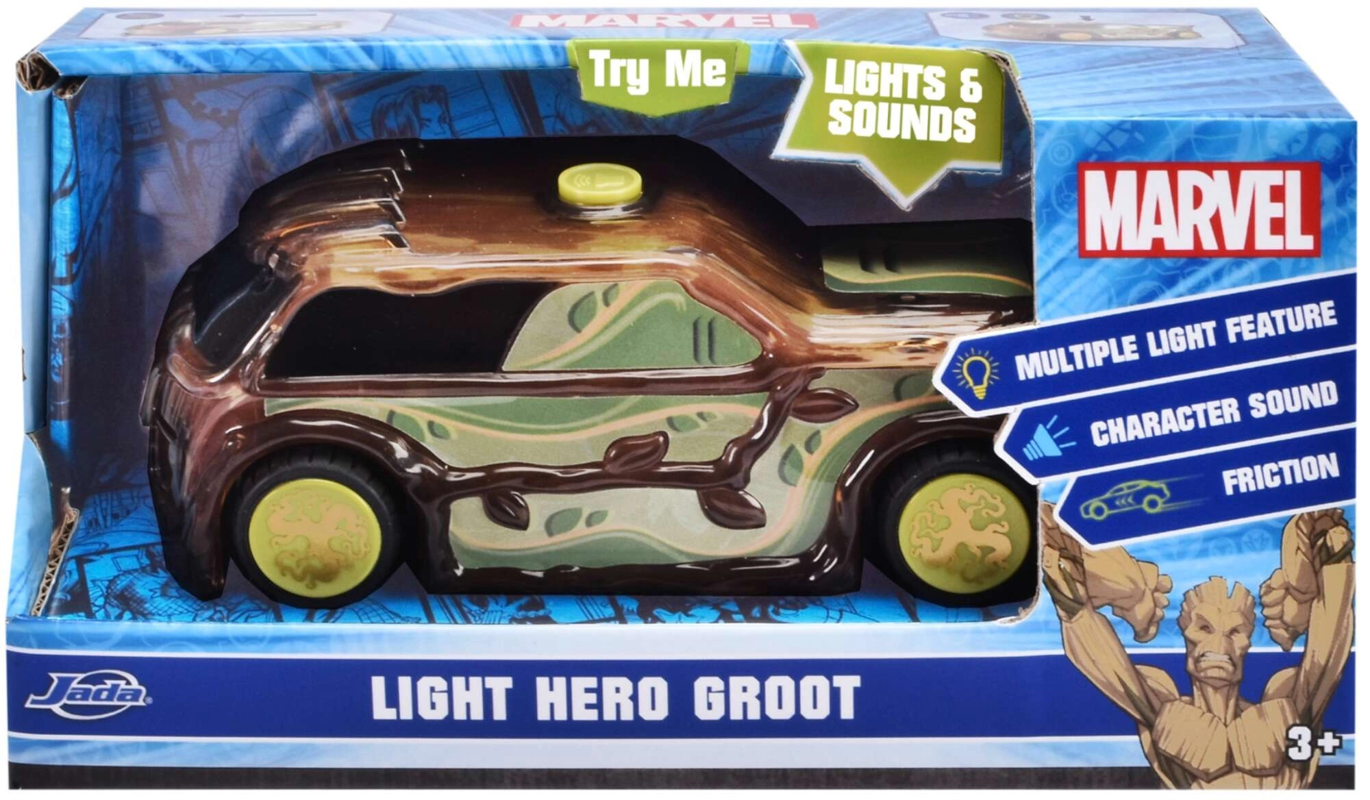 Otkrijte akcijski autić s motivom GROOT iz MARVELA, koji spaja interaktivne svjetlosne i zvučne efekte s originalnim prirodnim dizajnom nadahnutim drvom, lišćem i grančicama. Djeca lako aktiviraju efekte pritiskom žutog gumba na krovu i mogu kretnuti u avanturističke misije Avengera.