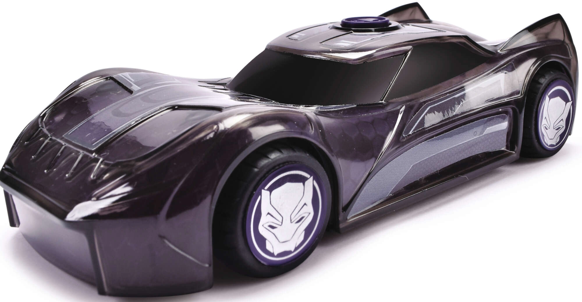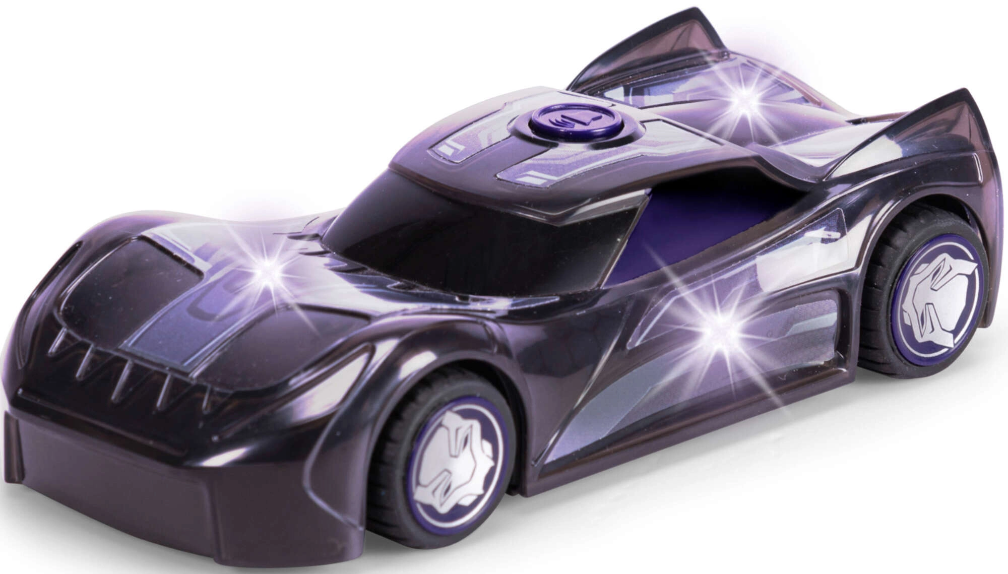 Krenite u akcijsku vožnju s autićem MARVEL Black Panther. Karoserija s motivima maske i futurističkim linijama savršeno dočarava stil omiljenog heroja. Pritiskom na ljubičasti gumb pokreće se sjaj svjetala po cijeloj karoseriji i autentični zvukovi vozila i lika za još veći doživljaj igre.
