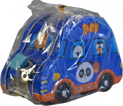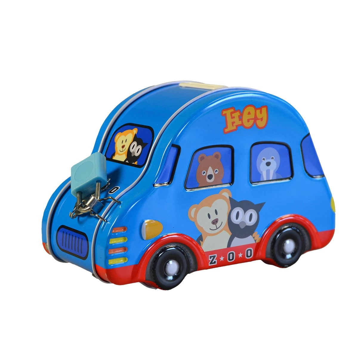 Ova dječja kasica u obliku autića spaja zaigrani dizajn s praktičnom sigurnošću. Metalna izrada je izdržljiva, a šareni otisci sa životinjama privlače na prvi pogled. Na gornjoj strani nalazi se utor za ubacivanje kovanica, a straga ili sprijeda mali lokot s ključevima za osiguranje ušteđevine.