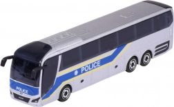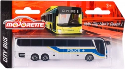 Metalni model autobusa MAN Lion's City C u policijskoj izvedbi razveselit će male i velike kolekcionare. Siva izvedba s plavom prugom, kvalitetno metalno tijelo s plastičnim detaljima i slobodno okretni kotači za glatku vožnju po ravnoj površini. Provjerena kvaliteta brenda Majorette iz serije Majorette Trailer.