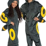 Sladak i udoban dječji kombinezon s kapuljačom inspiriran likom POKEMON Umbreon razveselit će sve male ljubitelje prerušavanja. Mekani plišani kigurumi kostim u crno–žutoj izvedbi ima kapuljaču s uškama i repom, prednji patentni zatvarač za lako oblačenje te je idealan za karneval, Noć vještica i igru kod kuće. Veličina za djecu 7–8 godina, visina 127–136 cm.