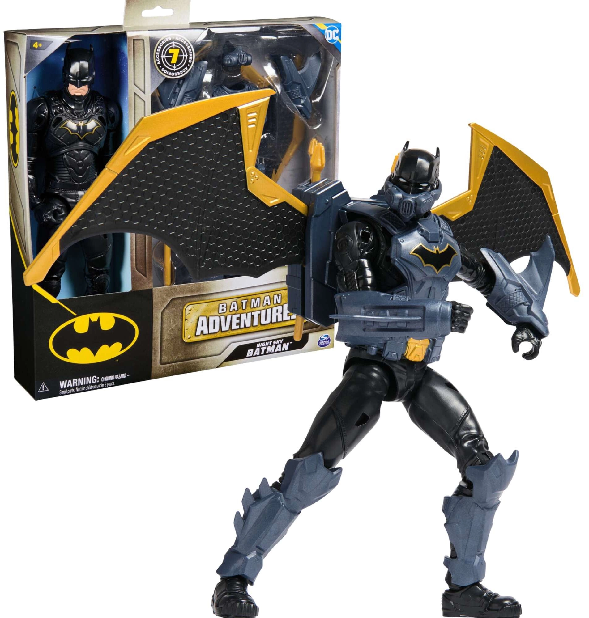 Velika akcijska figura BATMAN 30 cm za male i velike obožavatelje DC-a donosi bogatu opremu, pokretne zglobove i efektna odvojiva krila za pustolovne scenarije. Zahvaljujući 7 dijelova opreme, oklopu i ispaljujućim projektilima, djeca mogu prilagoditi izgled i sposobnosti Mračnog viteza te uživati u kreativnoj igri punoj akcije.