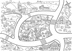 Otkrijte zabavu za male i velike uz ovu stvarno veliku bojanku s motivom sela. Format 64 × 90 cm i papir gramature 200 g omogućuju udobno bojanje. Prikladna za bojice, voštane bojice i vodene boje. Kupnjom svih šest motiva možete ih spojiti u jedno veliko djelo povezano cestama.