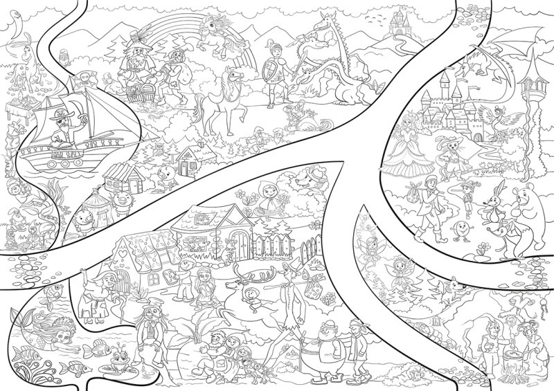 Otkrijte zabavu za male i velike s ovom doista velikom bojankom na temu bajki dimenzija 64 × 90 cm. Zahvaljujući papiru s visokom gramaturom 200 g/m² možete bez brige koristiti drvene bojice, voskaste bojice i vodene boje. Pri kupnji svih 6 vrsta mogu se spojiti u jedno veliko djelo povezano putem.
