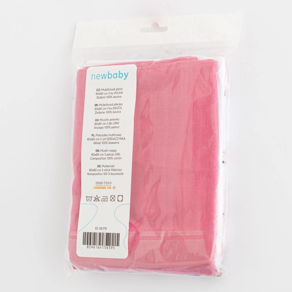 Nježne mušelin pelene NEW BABY u povoljnom pakiranju od 3 kom idealne su za svakodnevnu njegu bebe. Nude visoku upojnost, prozračnost i nježnost prema osjetljivoj koži. Lagana struktura mušelina osigurava cirkulaciju zraka i smanjuje rizik od pregrijavanja. U pakiranju se nalaze dvije jednobojne pelene i jedna s printom u bojama za djevojčice.